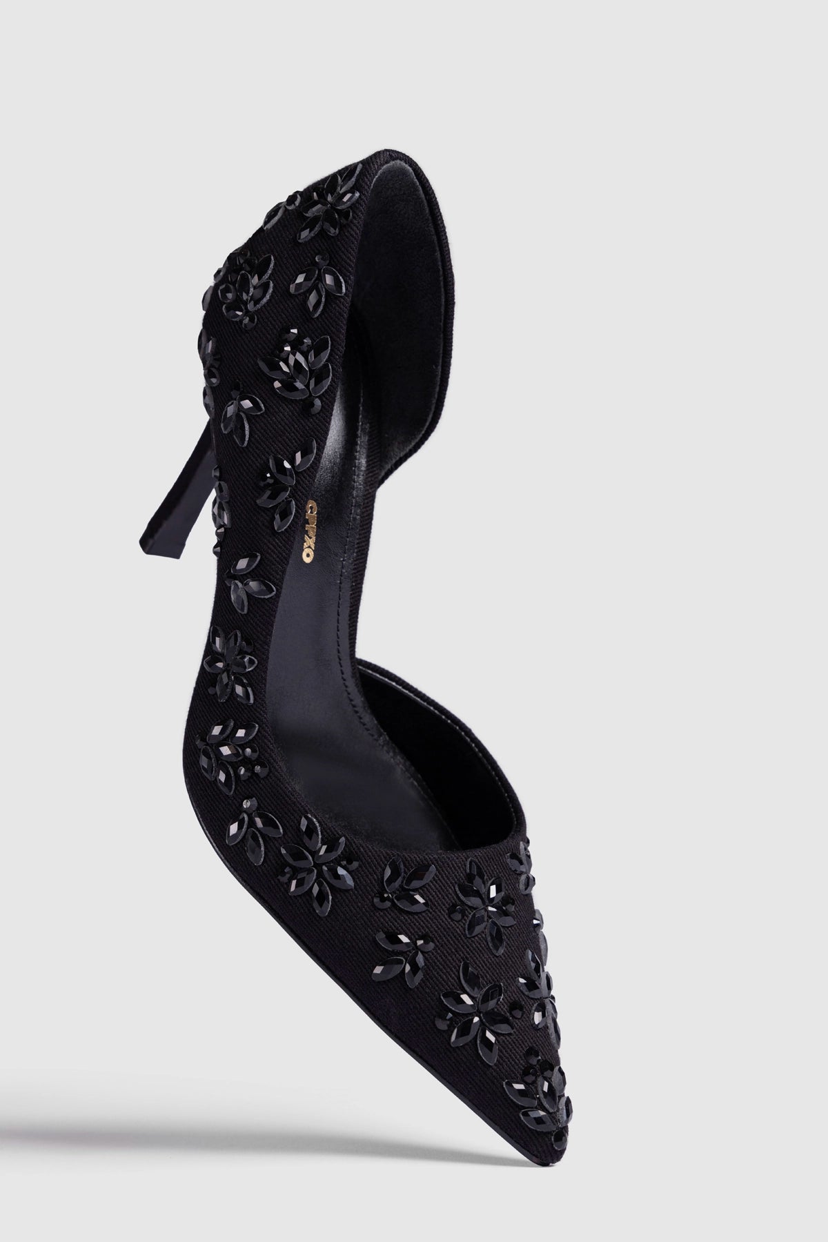One of the most creative minds in fashion, Candy Pratts Price brings her innovative view to our creations. A timeless silhouette with a bold twist, the D’OrsaypPump brings together the classic stiletto shape with delicate floral appliqués, adding a elegant yet modern edge.