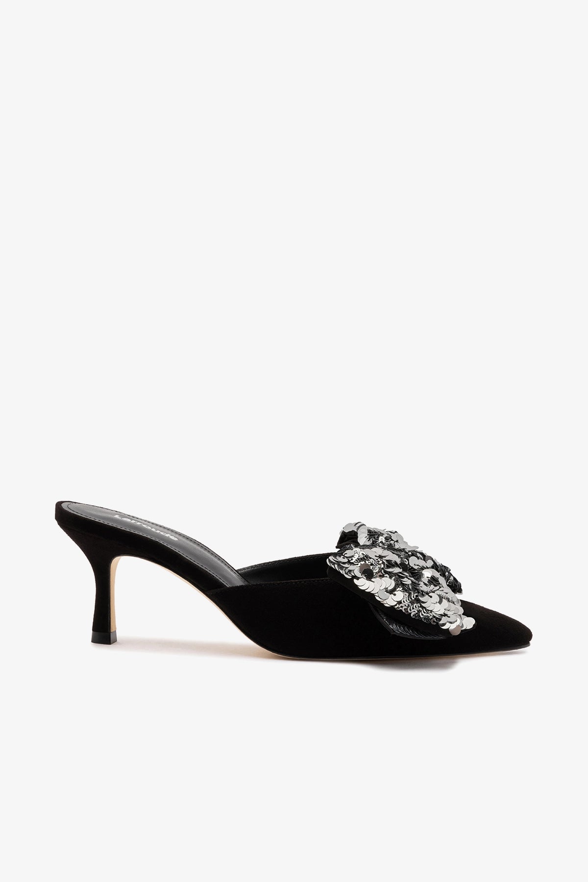 Our iconic Mini Elle pump is back, this time in soft Lancaster with a sequined bow that make every step a little brighter. A mix of festive charm and couture craftsmanship, she’s the kind of shoe that turns even a simple outfit into a moment.