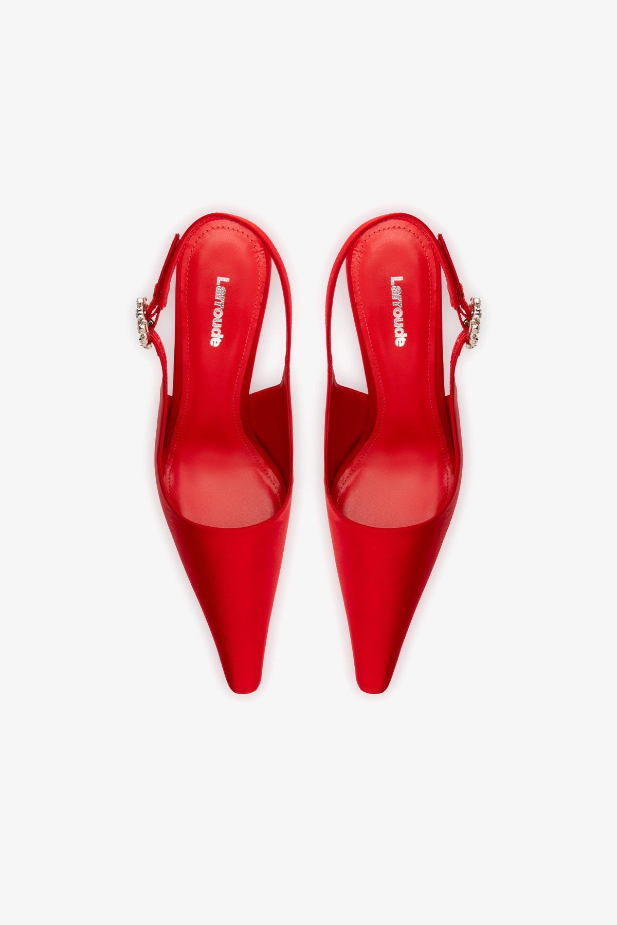The Carine pump—in homage to the iconic Carine Roitfeld—is our vision of feminine power, reimagined in premium satin. Featuring a sharp pointed toe and stiletto heel, it defines the night's silhouette, while the crystal-adorned buckle is the finishing touch for celebrating the festive period.