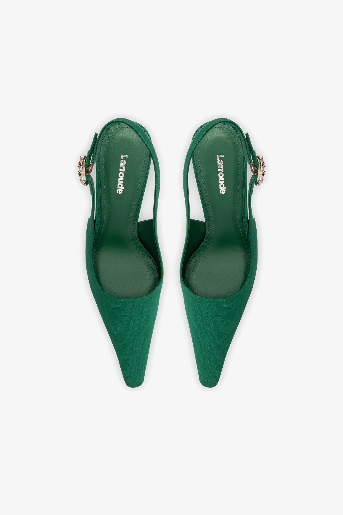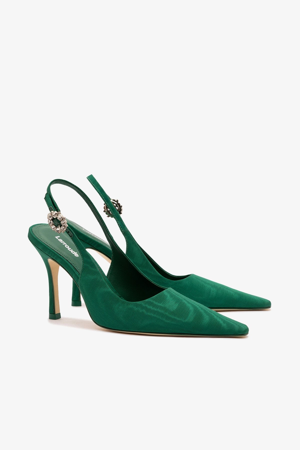 The Carine pump—in homage to the iconic Carine Roitfeld—is our vision of feminine power, reimagined in Moiré silk. Featuring a sharp pointed toe and stiletto heel, it defines the night's silhouette, while the crystal-adorned buckle is the finishing touch for celebrating the festive period.