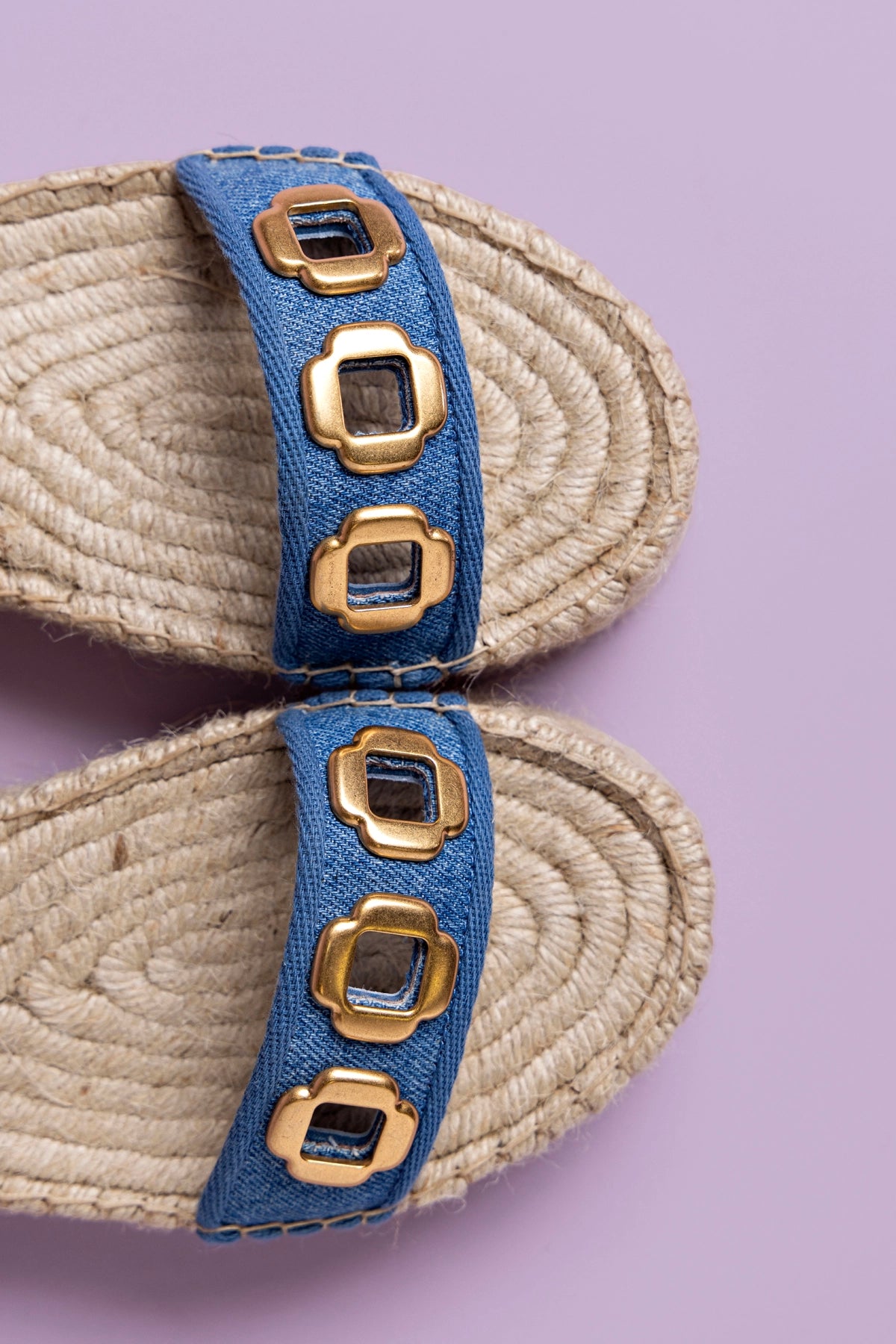 The newest member of the family, the Milan Espadrille Flatform is on our High Summer packing list. With the same motifs that have made the Milan a best seller, along with a super comfortable and of-the-moment flatform base, this denim sandal features a leather upper with our signature hardware, ribbon straps that wrap all the way around the ankle, and a rubber sole for maximum durability.