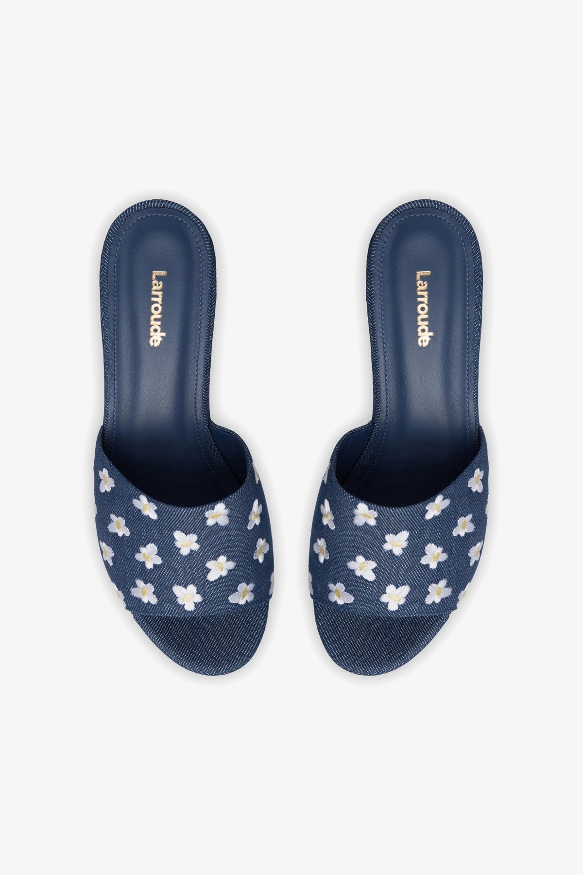 Modeled after 70s styles, the Larroudé Miso has the look—and height—of a platform with the feel of a flat. We updated this neutral denim pair with handstitched daisies that give it a sweet feel without being too precious. Wear them with just about anything.