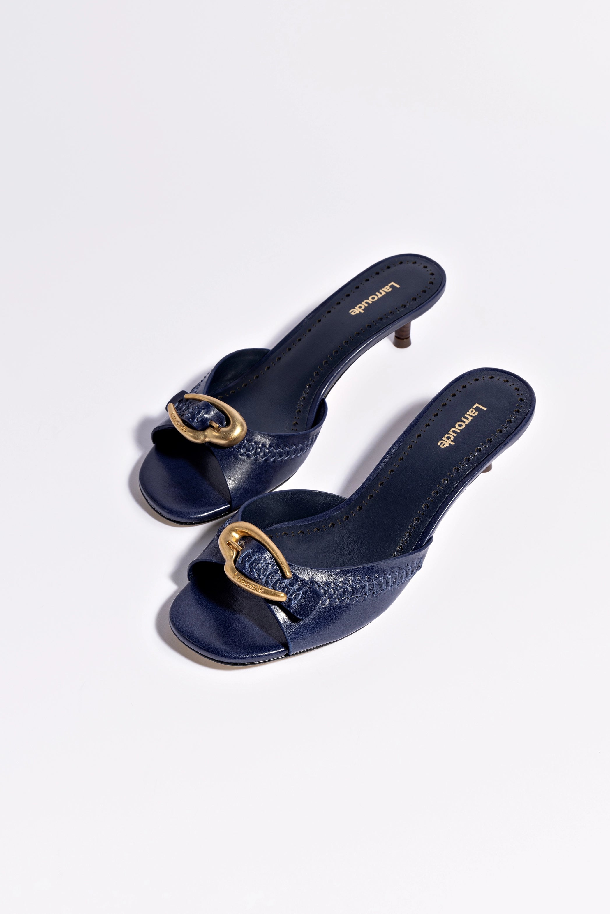 An elegant new addition to the Verona family, this mule comes just in time for Spring. Set on a wooden kitten heel, this indigo leather sandal features a beautiful stitch detail and gold hardware that catches the eye—and sets them apart.