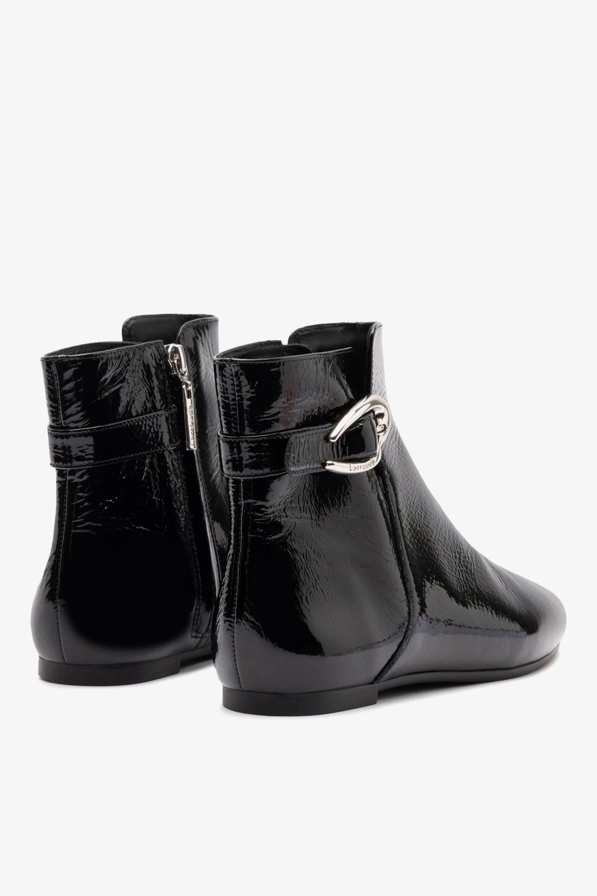 Versatile, minimal, and made to move with you, this sleek ankle bootie is designed for ease, with a slip-on silhouette and a chic, adjustable tab closure for a customized fit. Set on a comfortable flat sole, it’s equal parts practical and polished.