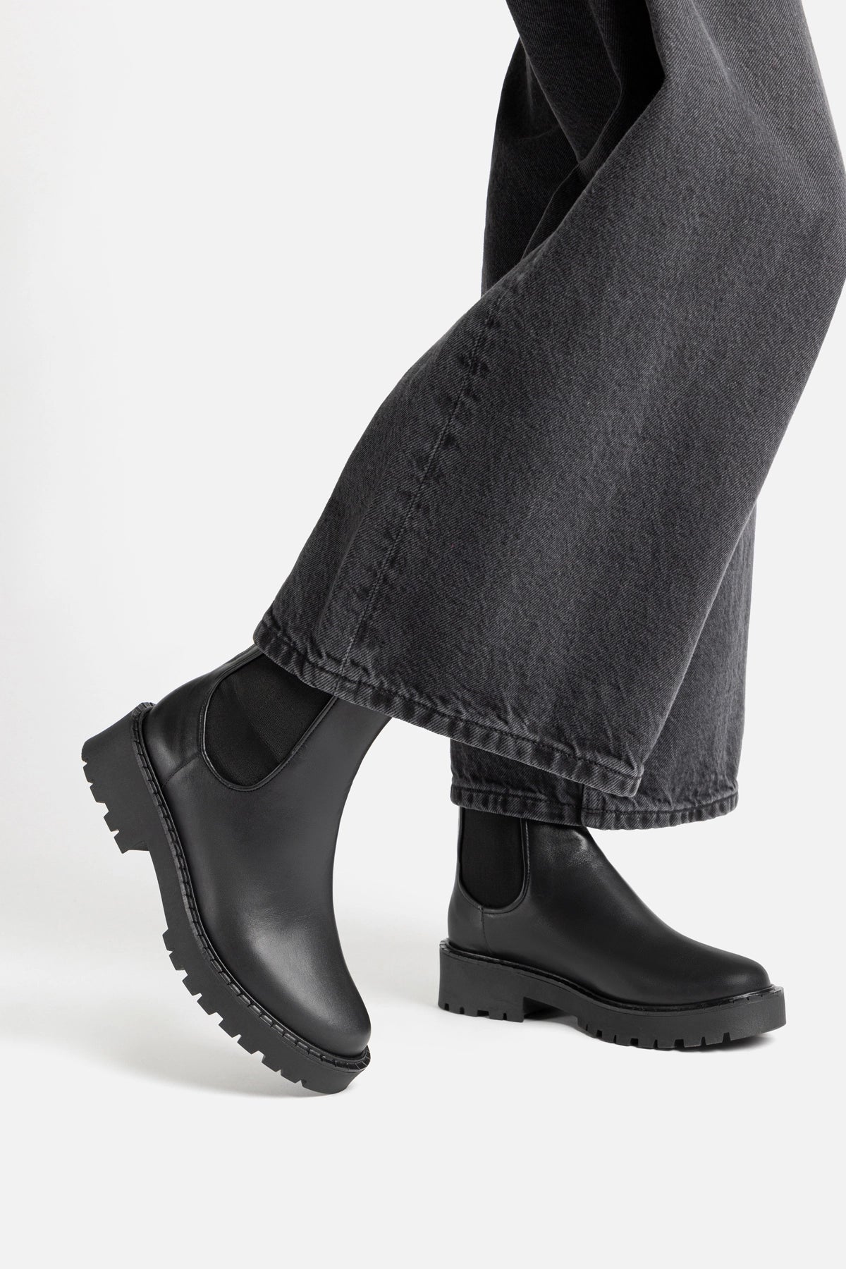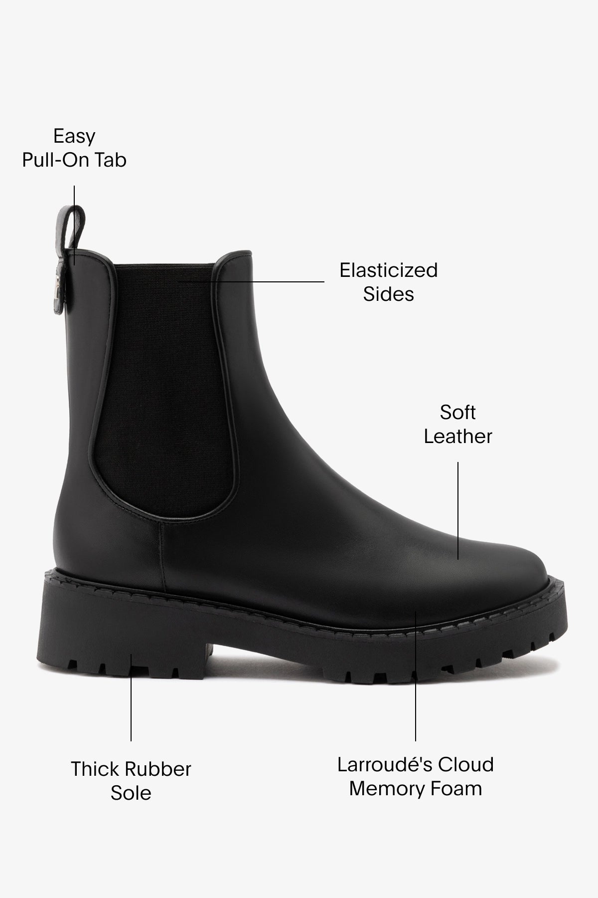 This pull-on bootie pairs minimalist design with maximum impact. Grounded by a chunky lug sole, it features elasticized side panels for a flexible, slip-on fit. No laces, no fuss—just bold style.