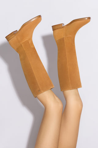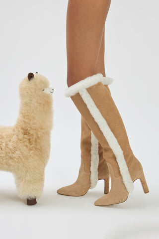 Cindy Hi Faux Fur Boot In Peanut Suede and Natural Shearling