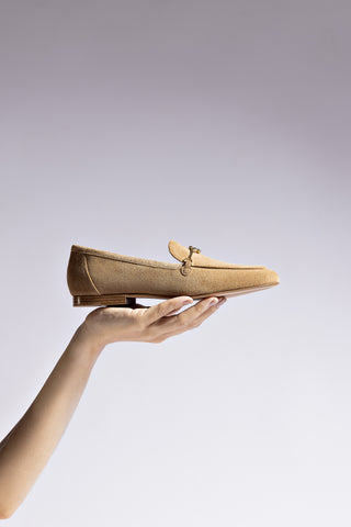 Miso Wooden Platform Clog In Peanut Suede And Natural Shearling