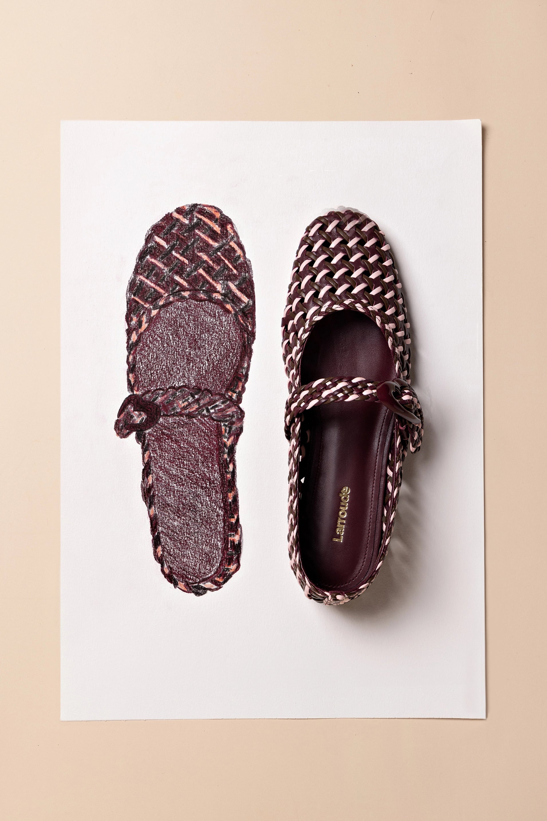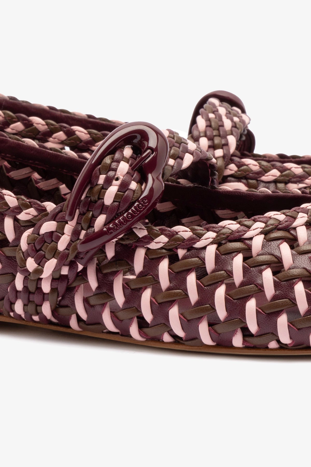 Verona Macrame Ballet Flat In Wine, Tulip and Burnt Umber Leather