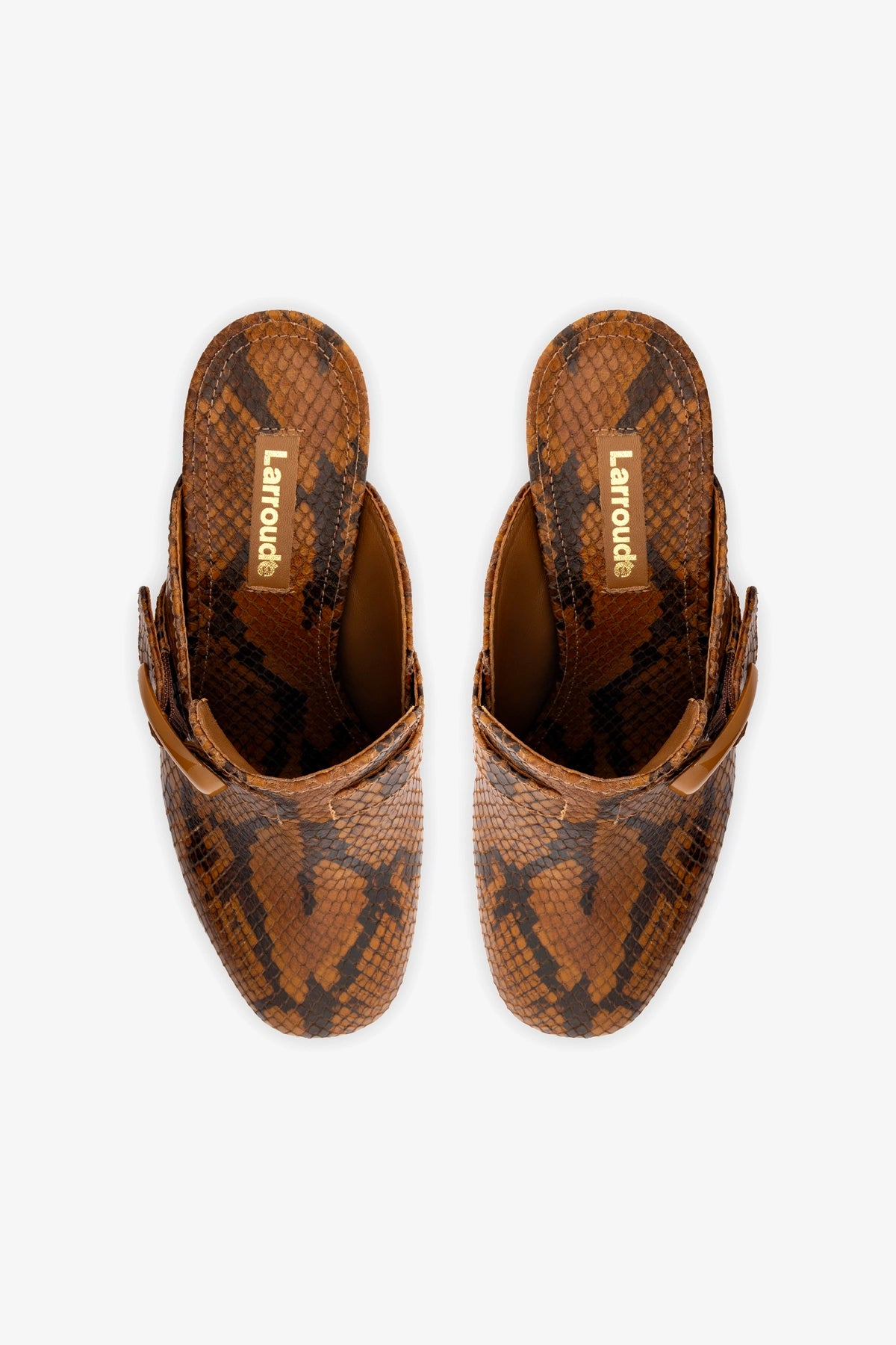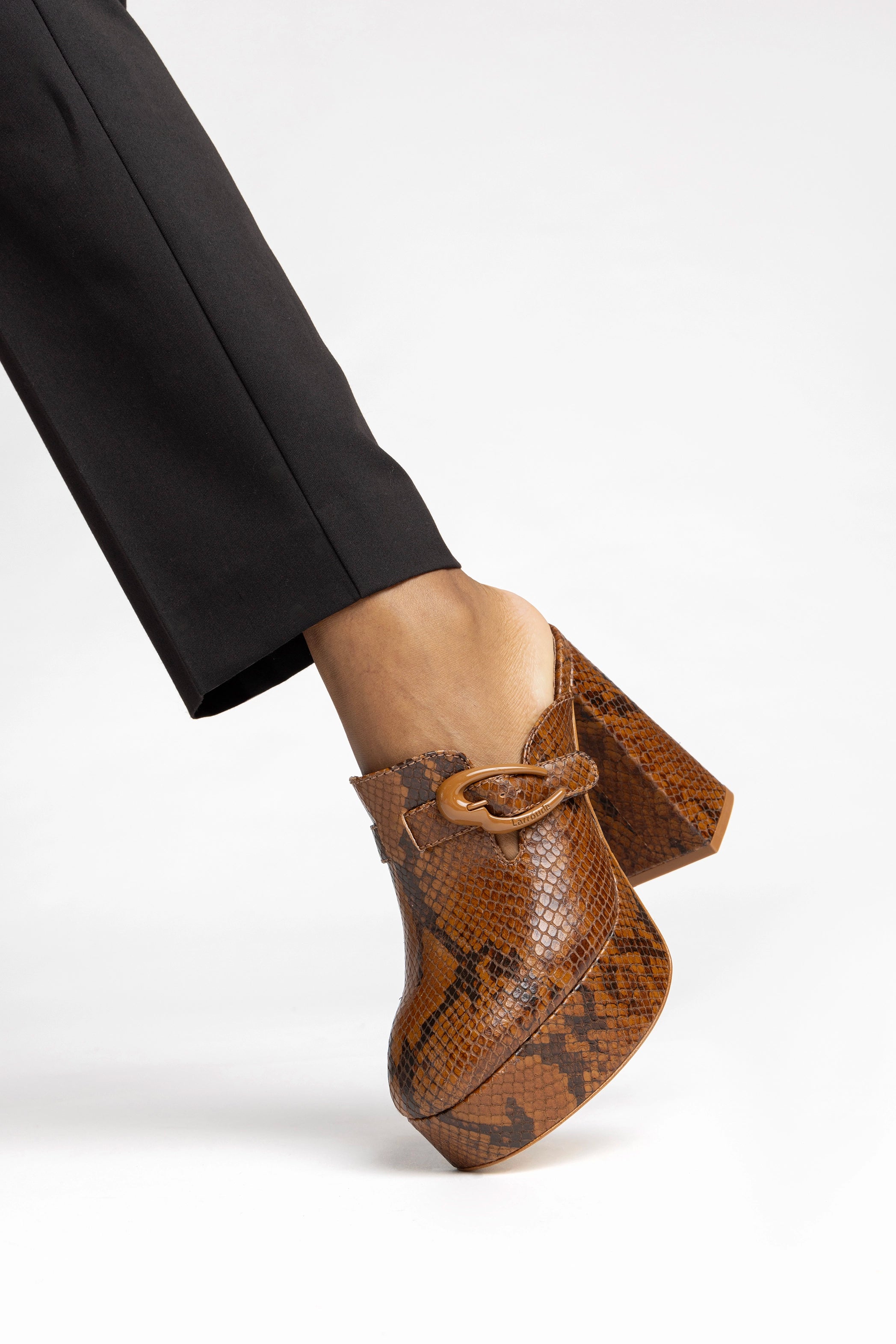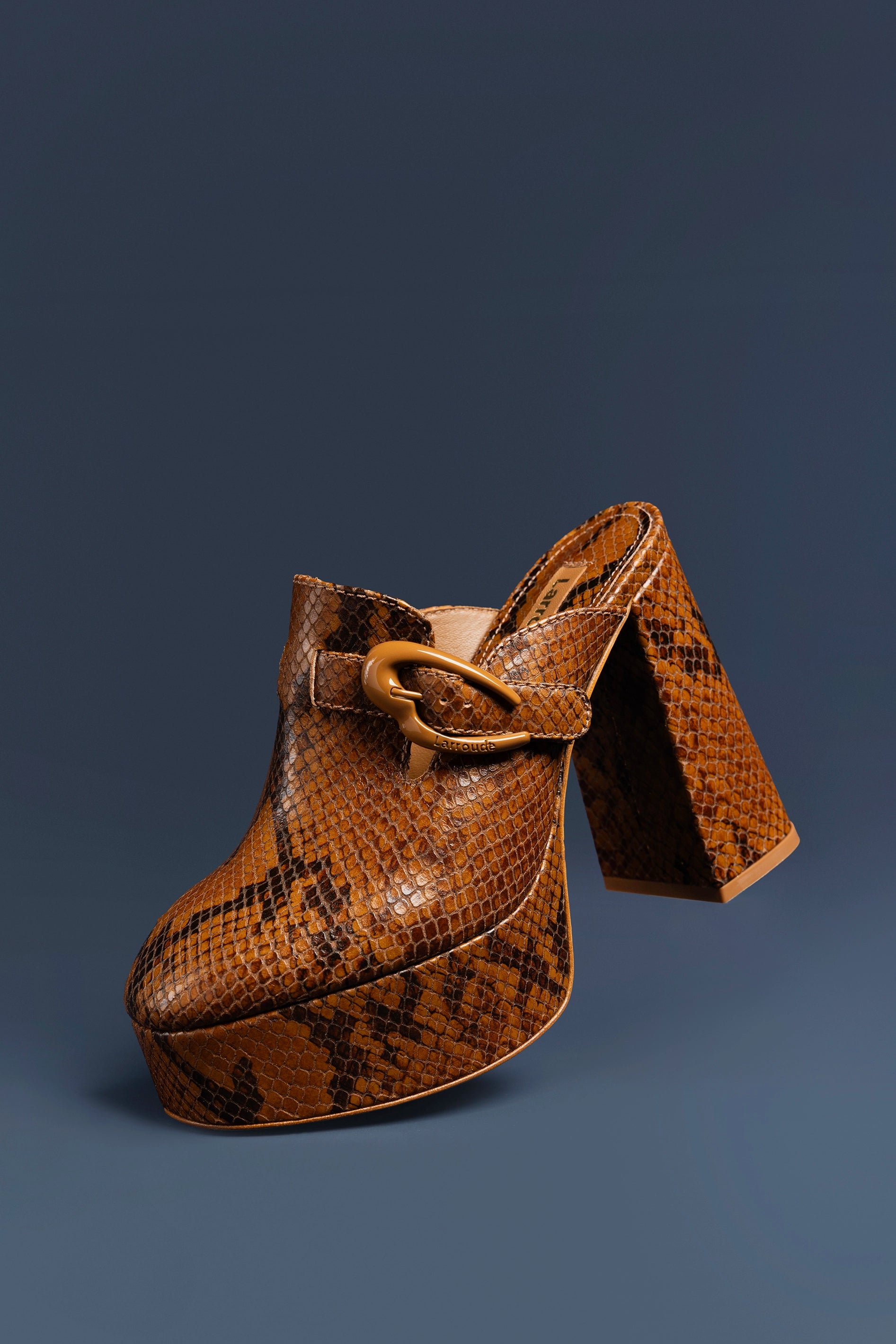 A style so nice, we can't help but keep coming up with new ways to wear her. Enter the Dolly Verona Clog, a reimagining of the classic Dolly Sandal, now in a super-high platform closed-toe mule silhouette. Slip into this versatile clog in a neutral python-embossed leath that will become Fall's most-worn neutral.