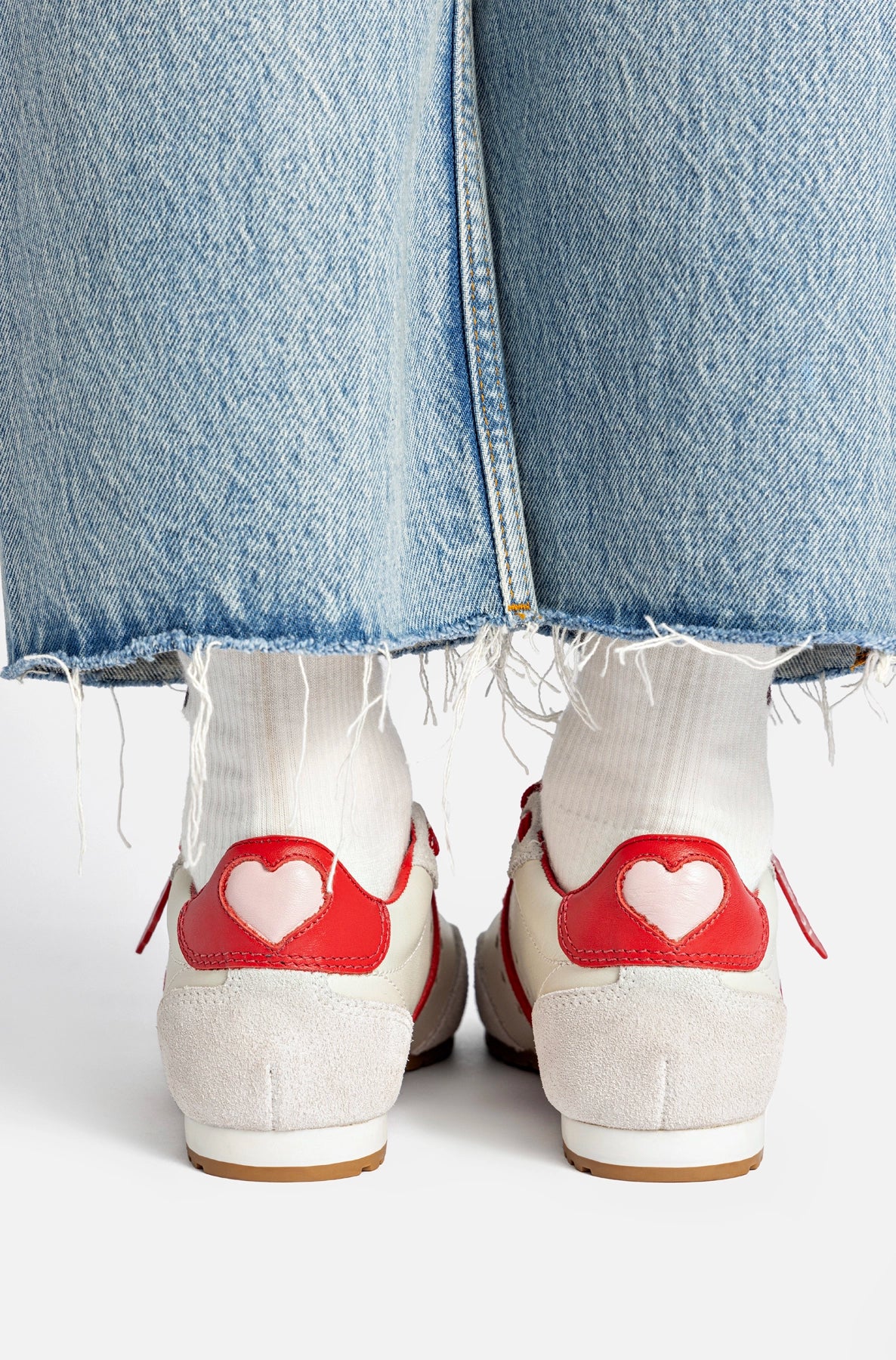 Stella Amore Sneaker In Ivory Leather and Scarlet Suede