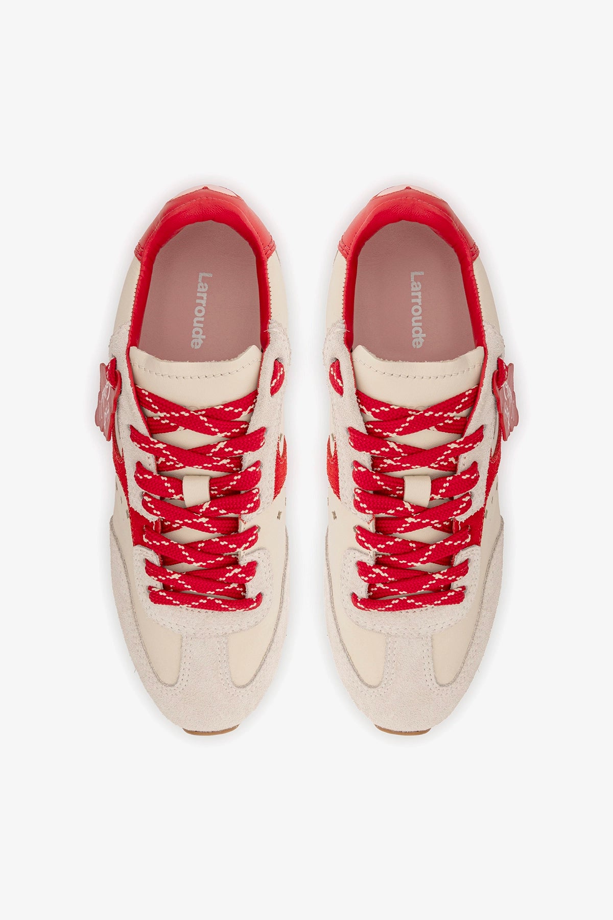 Love is in the air... and in our feet. As part of Larroudé’s Valentine’s Day capsule collection, our best-selling Stella sneaker is proof that comfort and style can coexist—and stand out. Now in a super romantic ivory version with scarlet accents, it brings a modern edge to any look, from city strolls to weekend getaways.