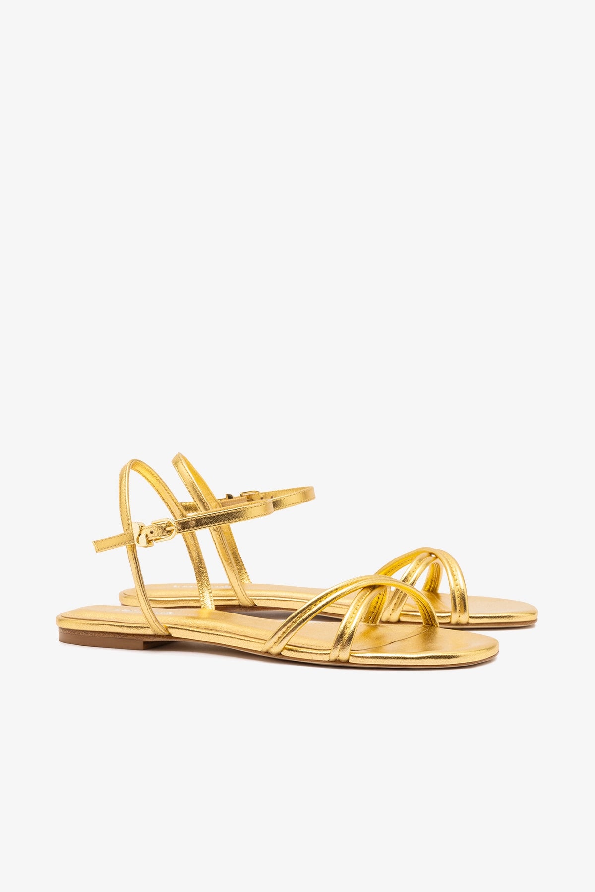 Annie Sandal Ankle Tie In Gold Metallic Leather