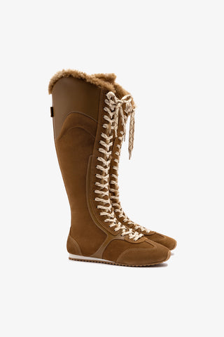 Larroudé x Jonathan Cohen Flat Lo Sneaker Boot In Ivory, Oyster Grey and Scarlet Suede