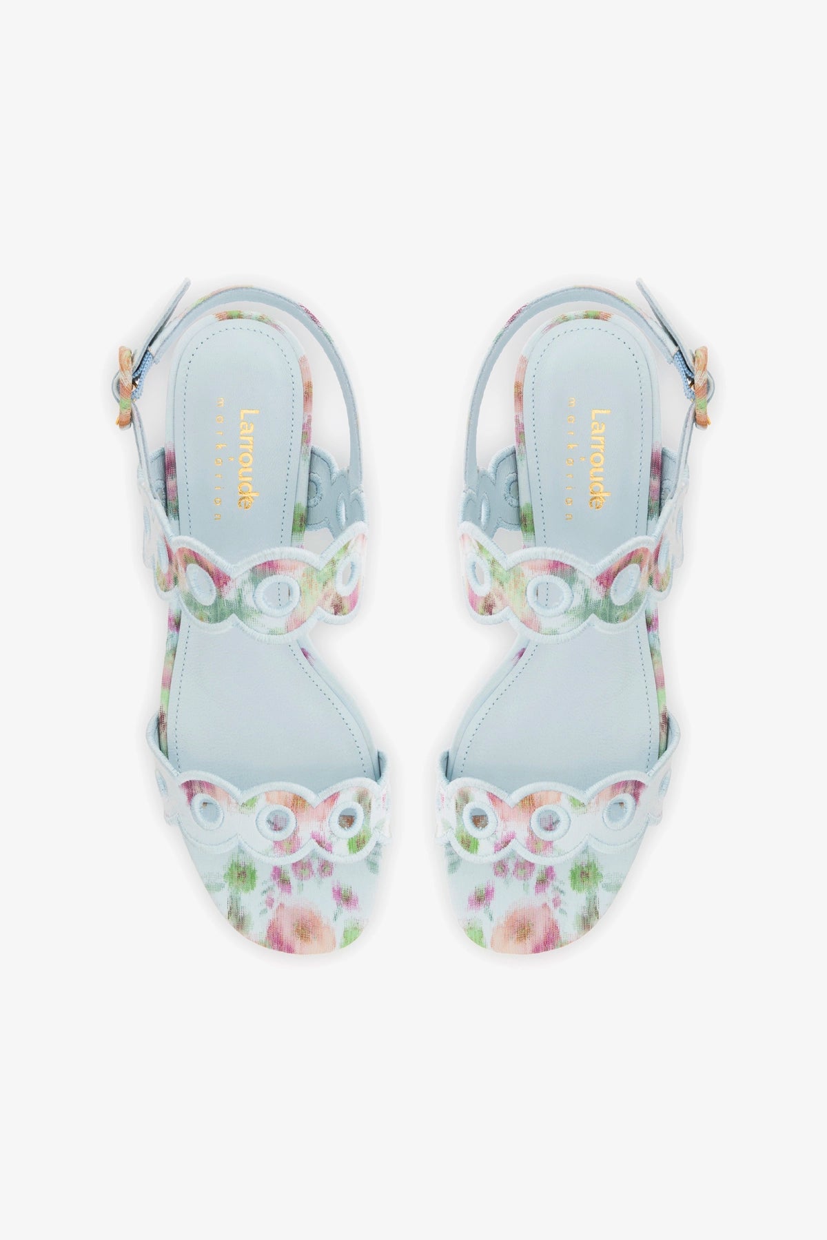 Larroudé x Markarian Florence Broderie In Apple Blue Floral Ikat