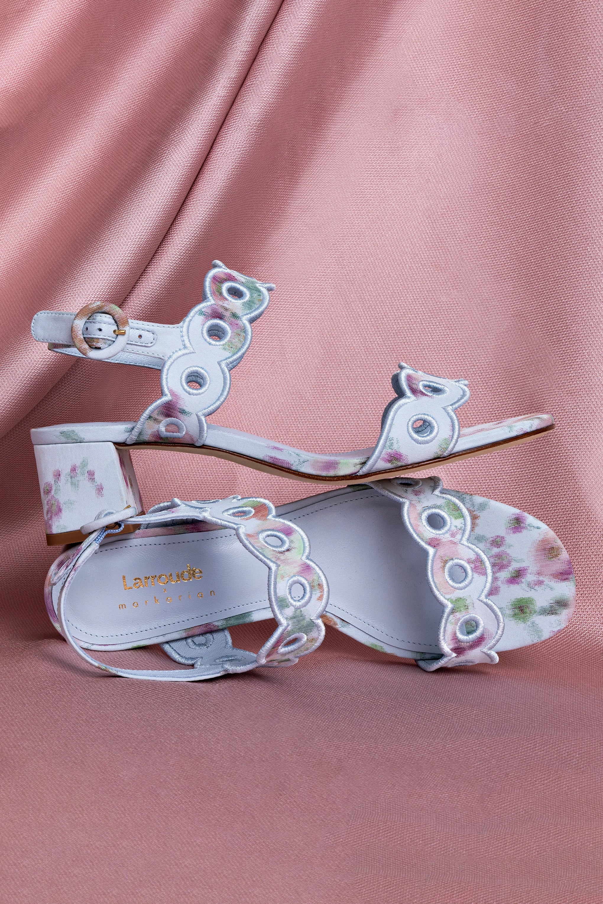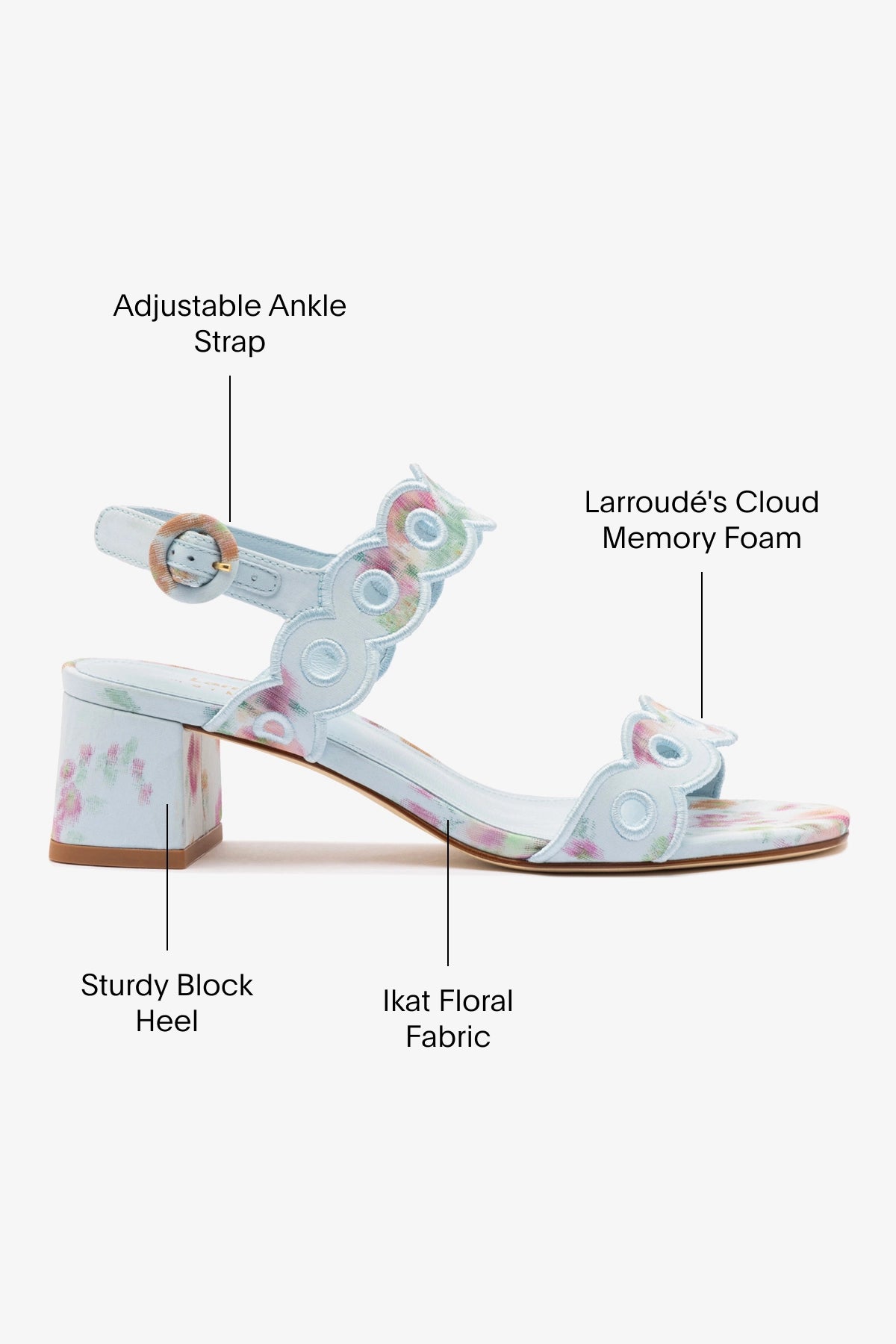 As part of our ongoing partnership with Markarian—and just in time for bridal season—we're so excited to work again with designer Ali O'Neill on this romantic reimagining of our signature Florence sandal silhouette. Updated with a beautiful ikat floral fabric with a sweet broderie trim, this new collection has us over the moon.