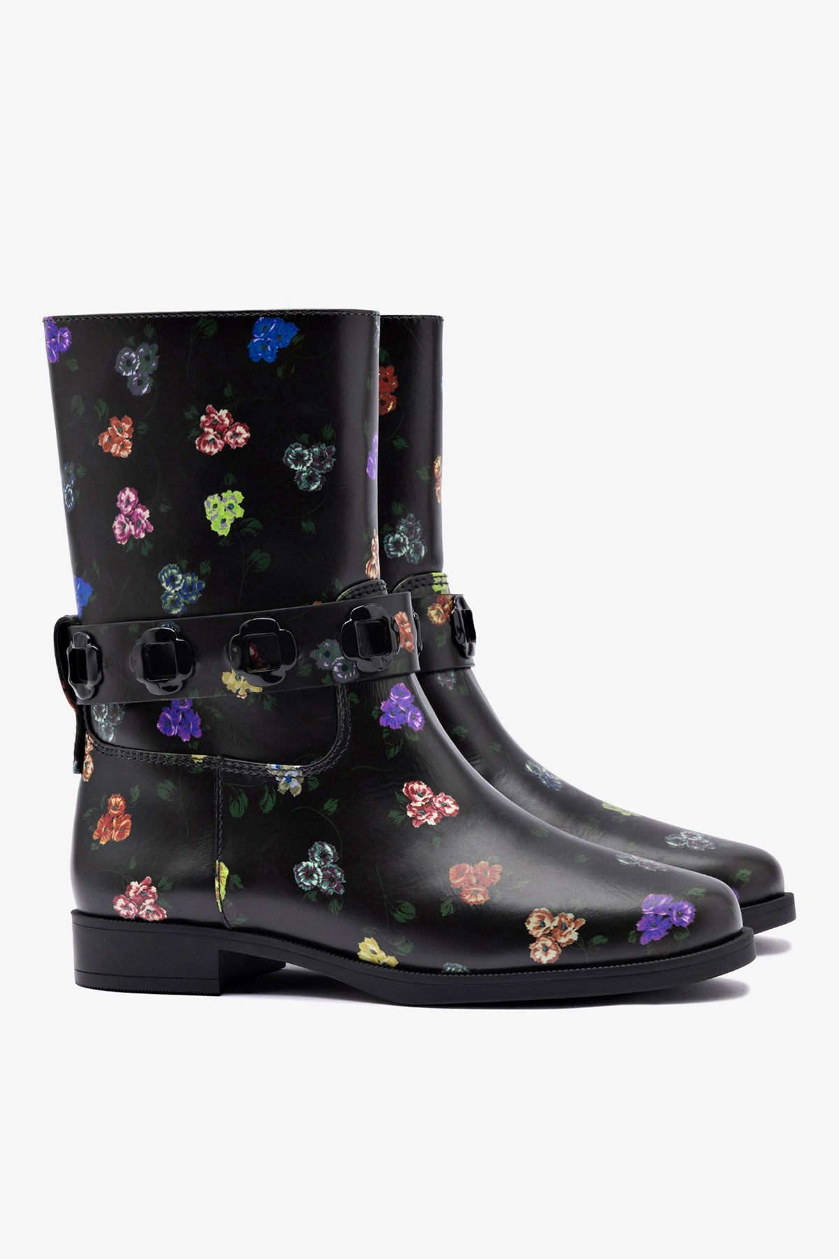 The perfect fusion of Larroudé’s joyful aesthetic and Libertine’s daring creativity, we've reimagined our Milan Flat Bootie together with designer Johnson Hartig to create a playfully-printed silhouette in the collection's pansy motif that infuses a signature Larroudé silhouette with Libertine's punk rock edge and couture sensibility.