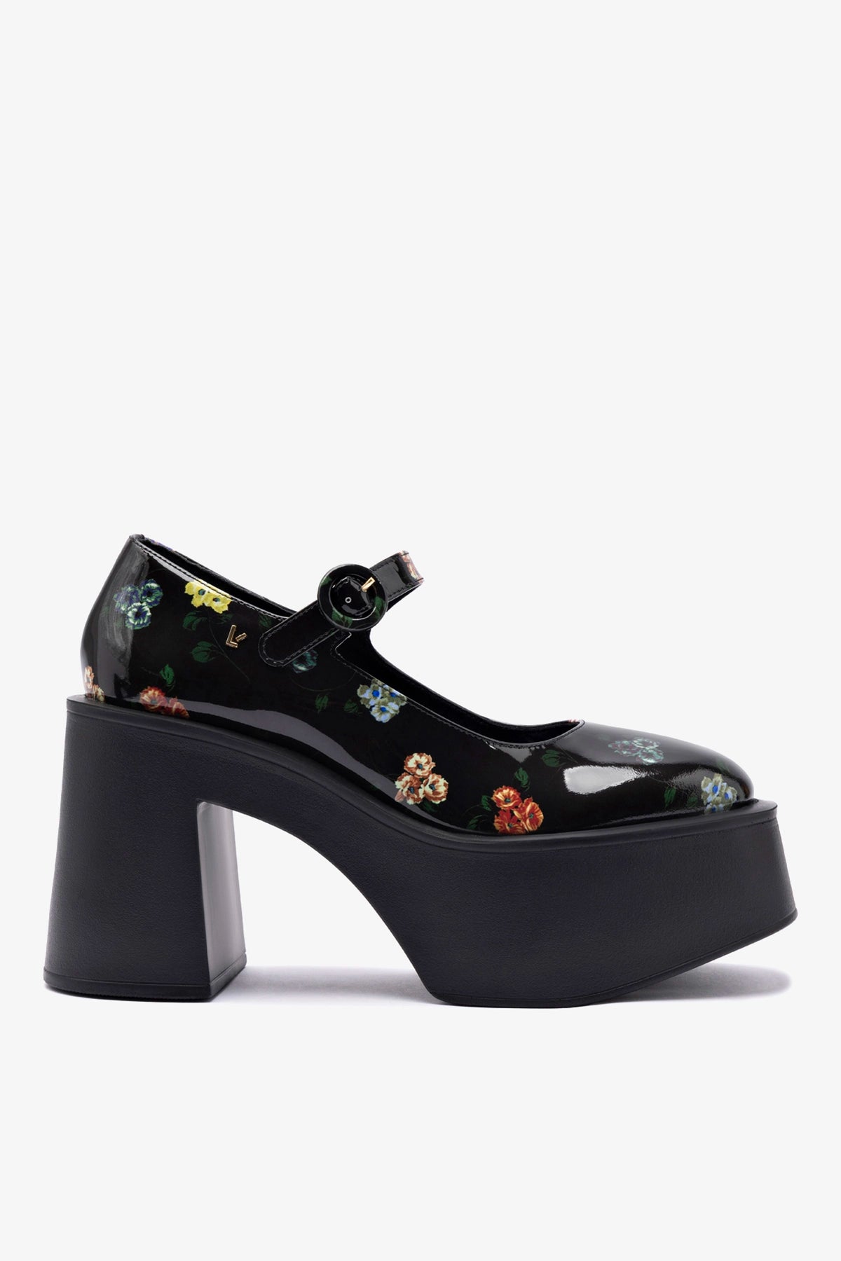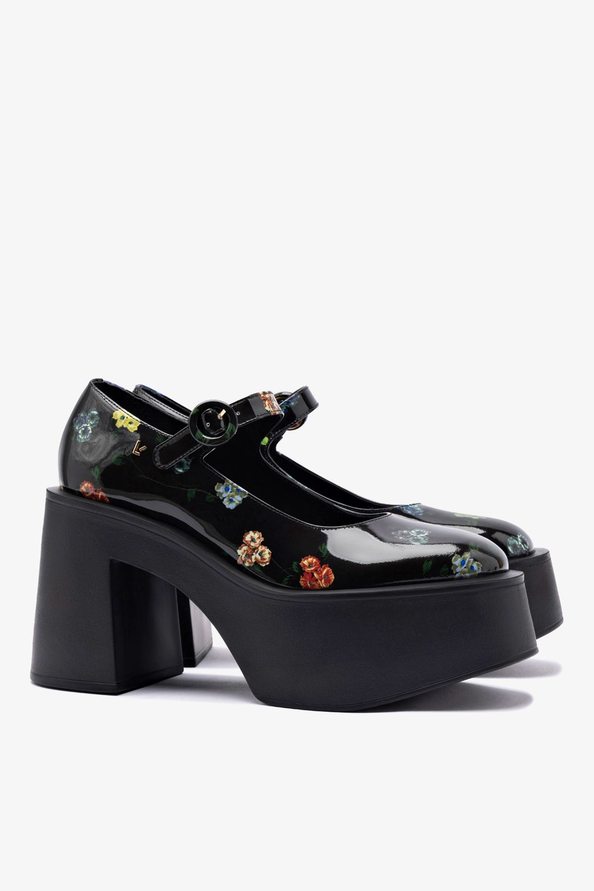 The perfect fusion of Larroudé’s joyful aesthetic and Libertine’s daring creativity, this lug-sole mary-jane silhouette—designed for their Fall 2025 collection—are a preppy throwback with a hint of punk that feels fitting for the LA-based label. Screen printed with the season's pansies print, these feature a schoolgirl appeal with an enviable edge.