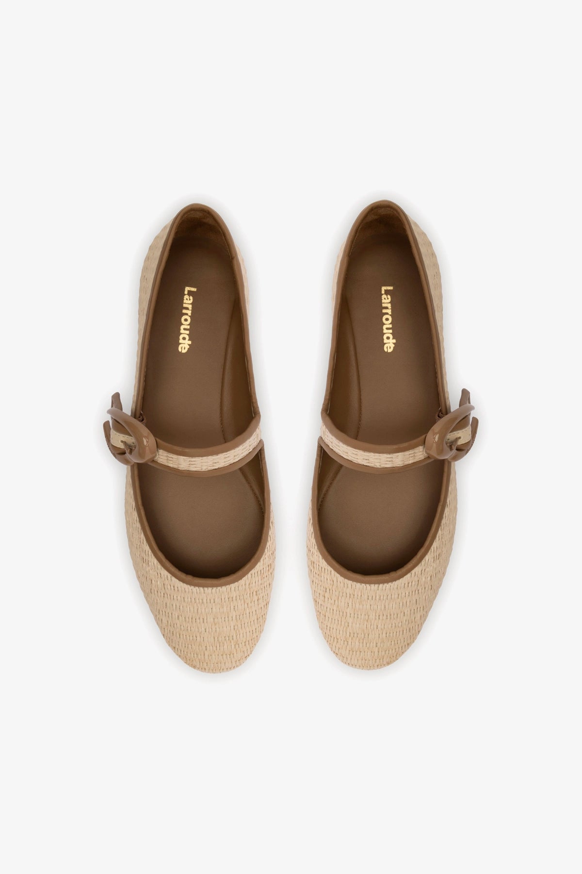 Verona Ballet Flat In Natural Raffia and Hazelnut Trimming