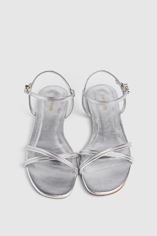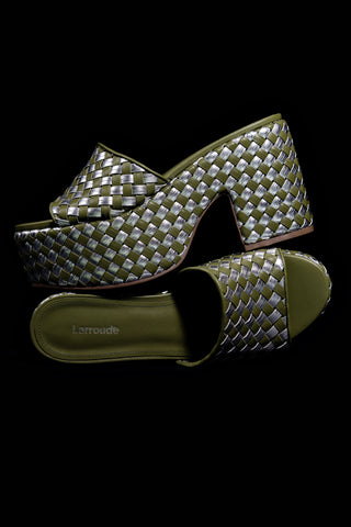 Miso Platform Sandal In Seaweed Leather and Silver Metallic Leather