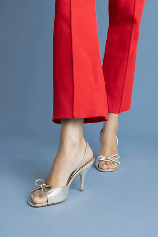 Devon Ballet Flat In Mushroom Grey Suede, Lilac Nylon and Silver Metallic Leather