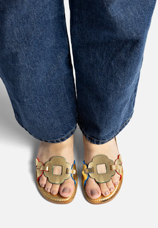 Dolly Verona Sandal In Gold Metallic Leather and Natural Raffia