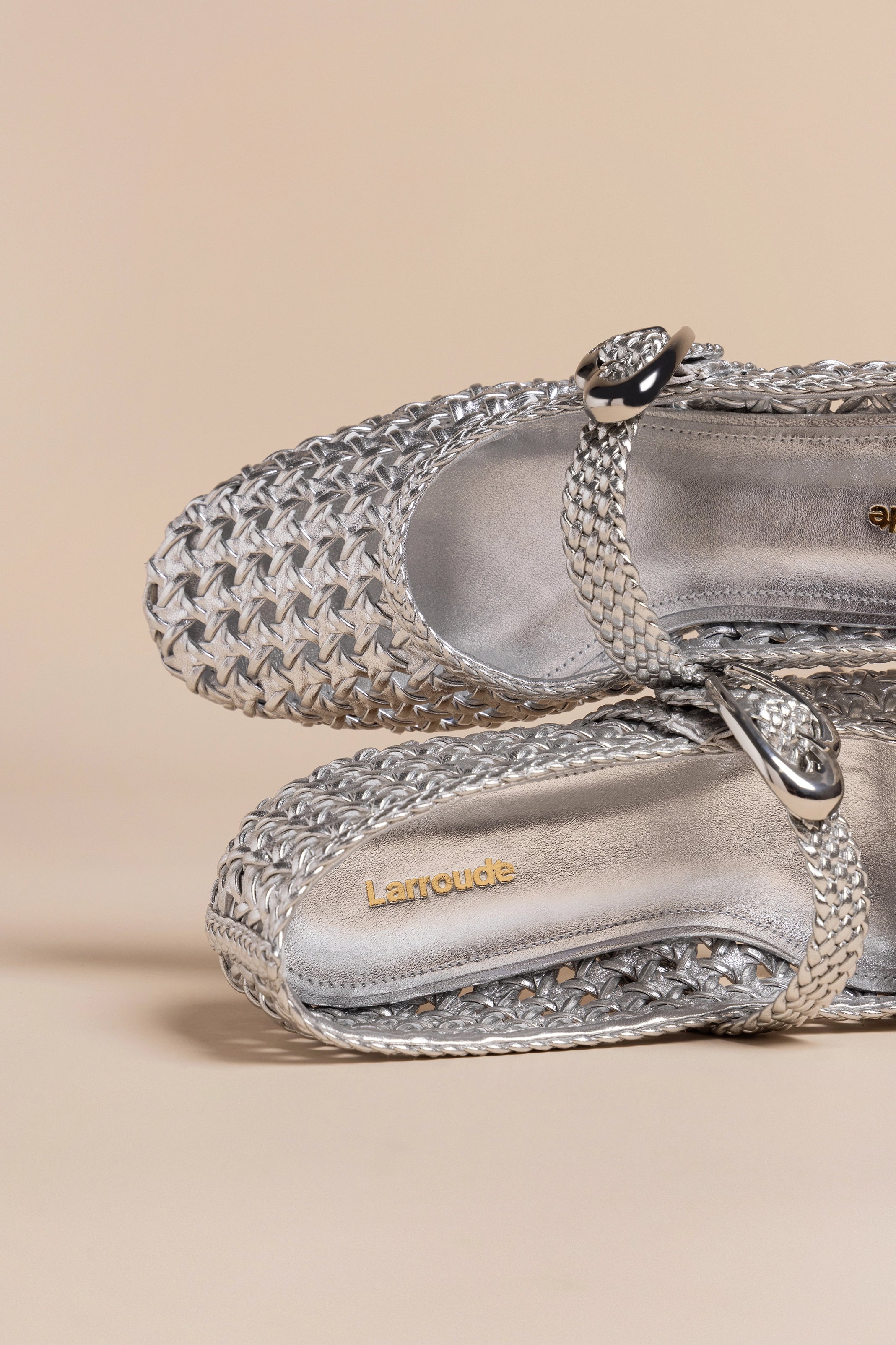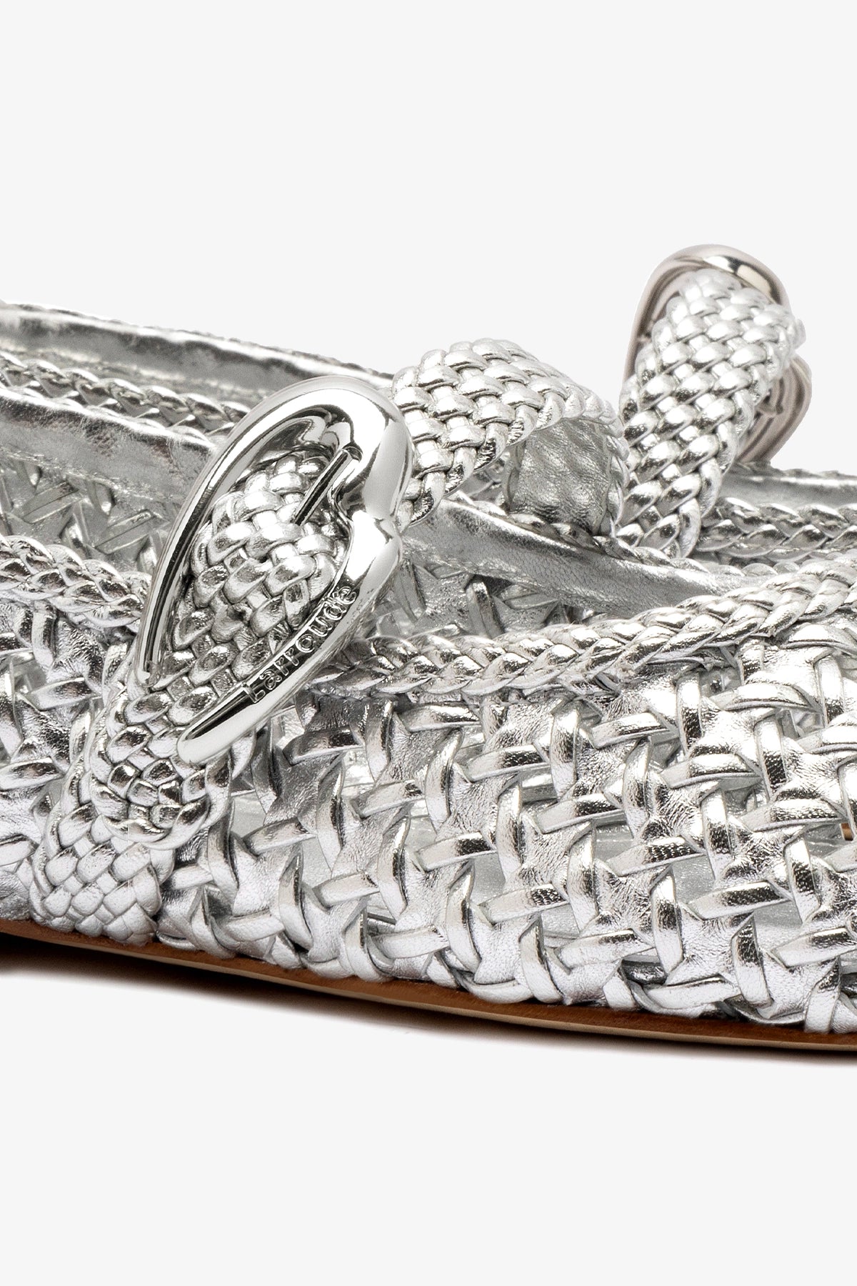 Our most comfortable flat yet, our newest Verona mary-jane takes cues from a Shakespearean romance. In an intricate woven macrame—and a tonal heart buckle at the strap—this surefire silver pair is a major metallic addition.