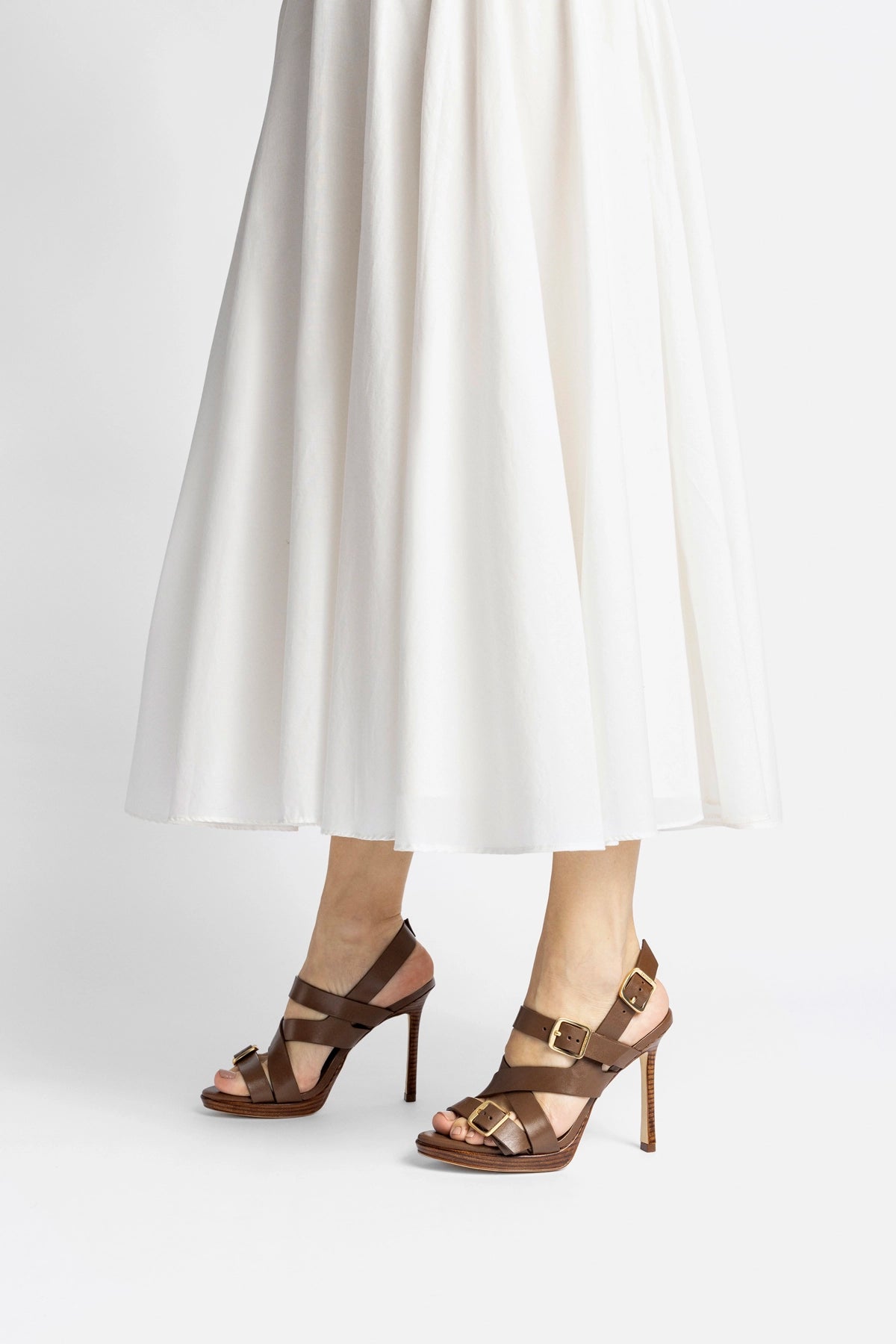The Patti sandal was built for a look that demands attitude and presence. Crafted in black leather, it combines a commanding stiletto heel with a structural wide strap design. Its charm lies in the silver buckles, which add a statement, rocker touch to this high-impact silhouette.