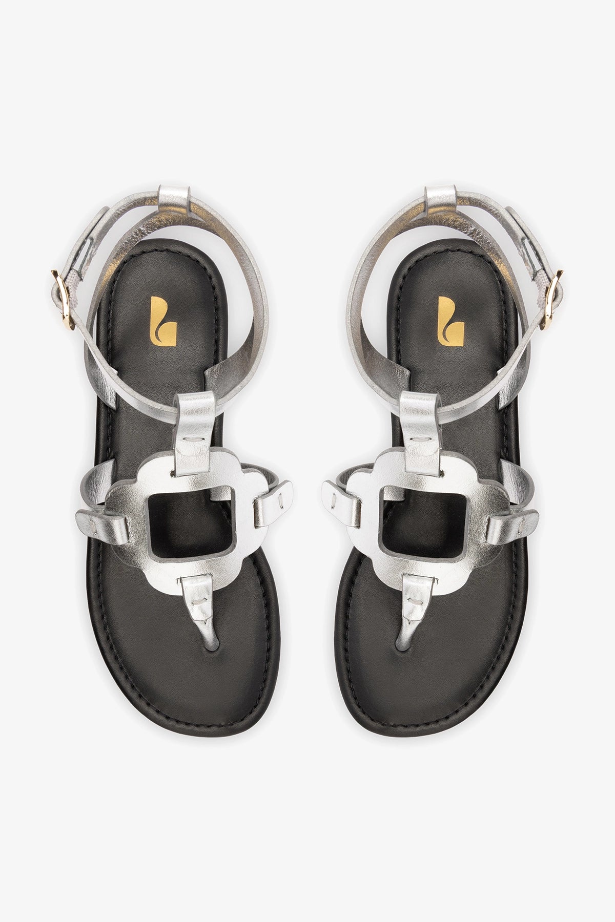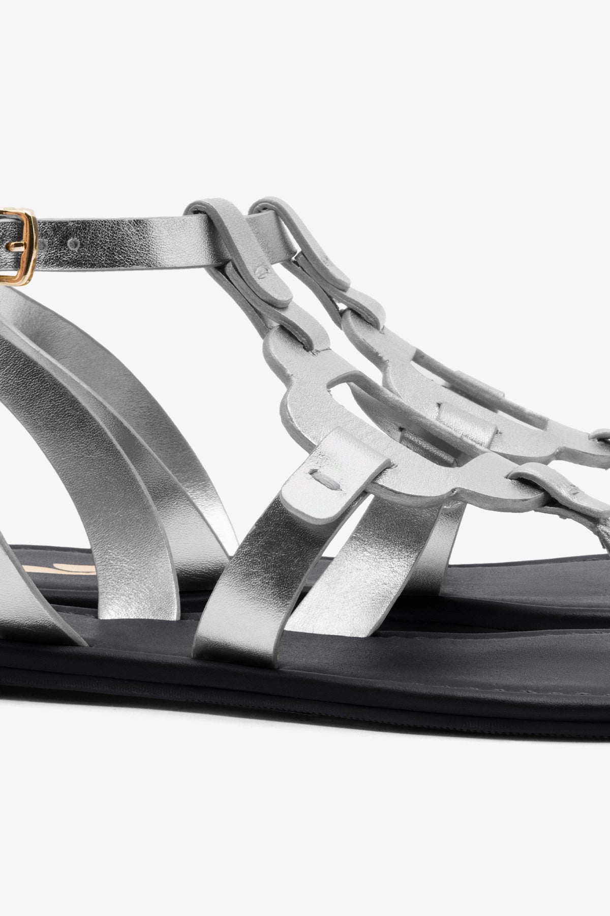 The Margherita sandal brings a fresh, modern take to a classic flat silhouette. With its laser-cut daisy motif and multi-strap design, it delivers a playful touch that still feels polished enough for everyday wear. The soft leather straps wrap comfortably around the foot, while the adjustable buckle keeps the fit secure from day to night.