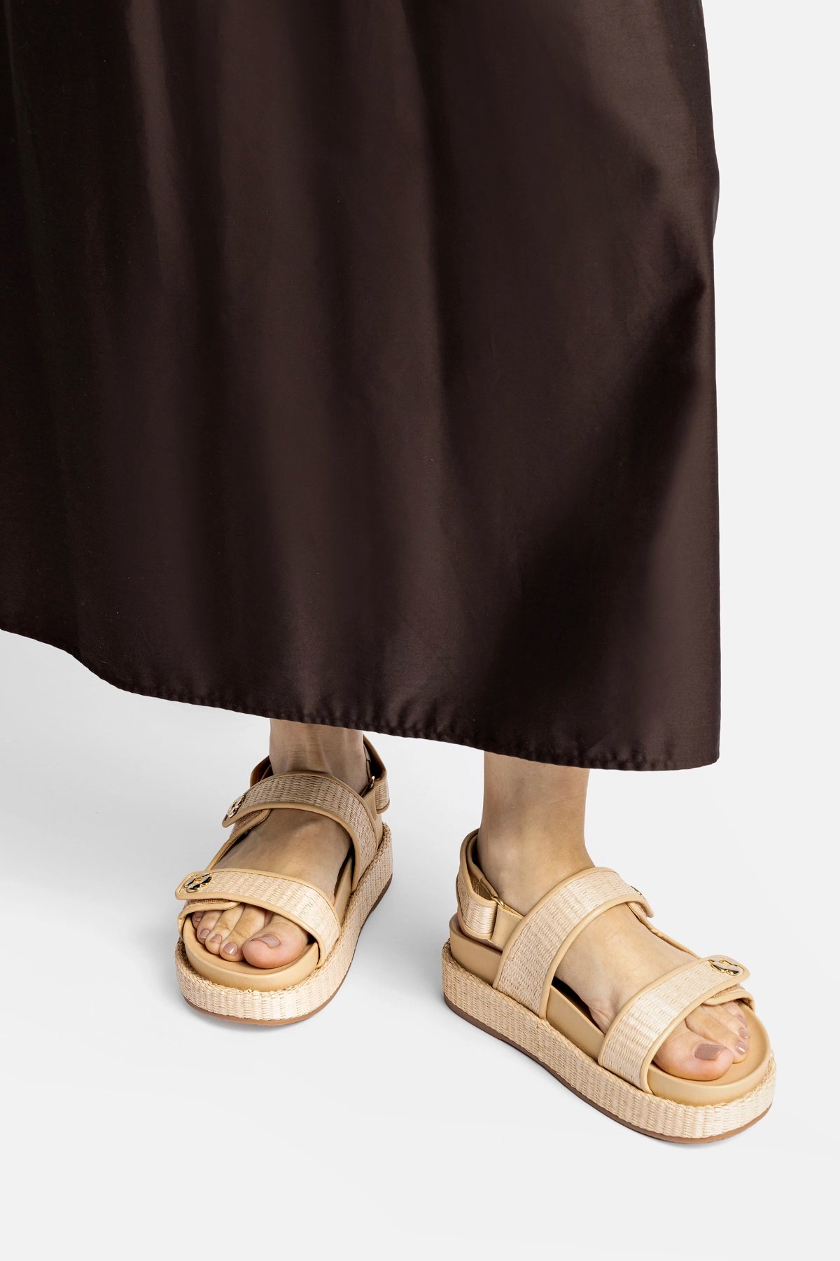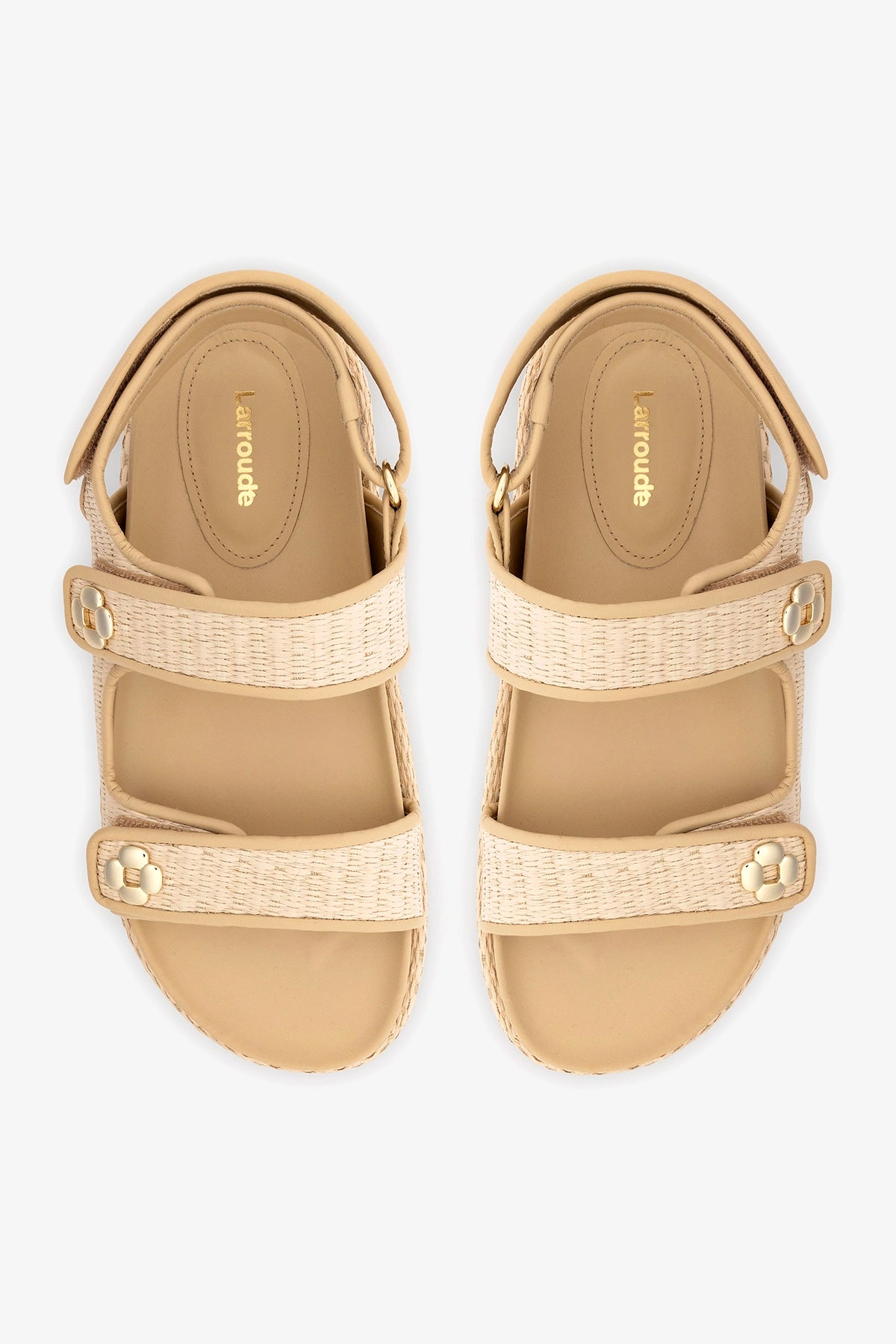 Jetty Sandal In Natural Beach Raffia and Beige Leather