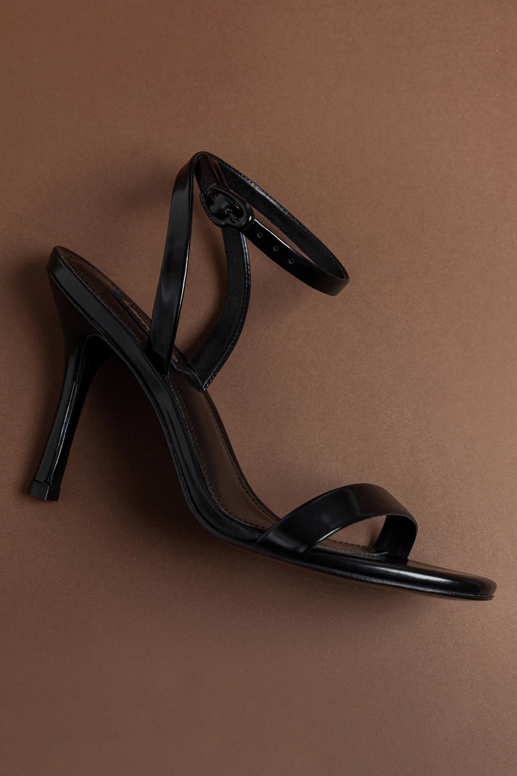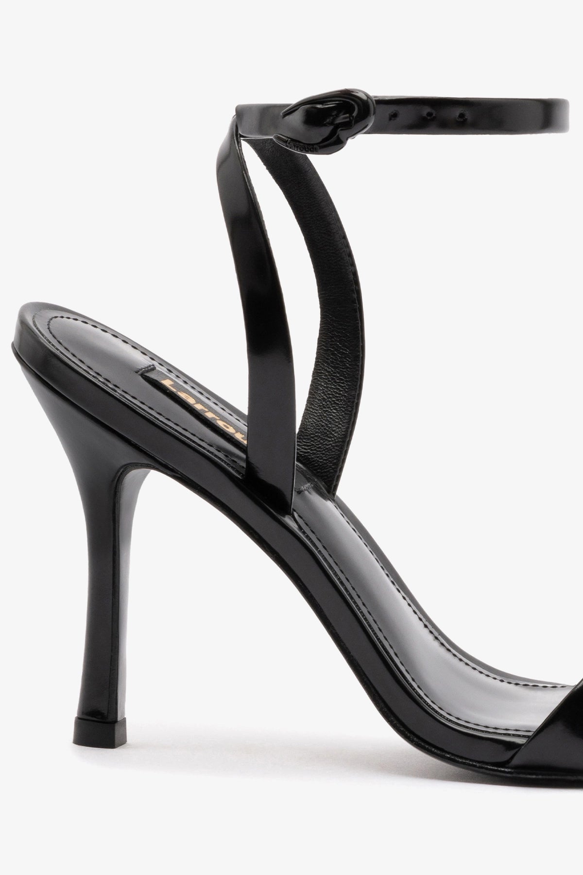 The kind of classic strappy heel that every closet needs...and deserves. The new Veronina in a glossy black leather features the subtle design details that set them apart—a pair worth dressing up for.
