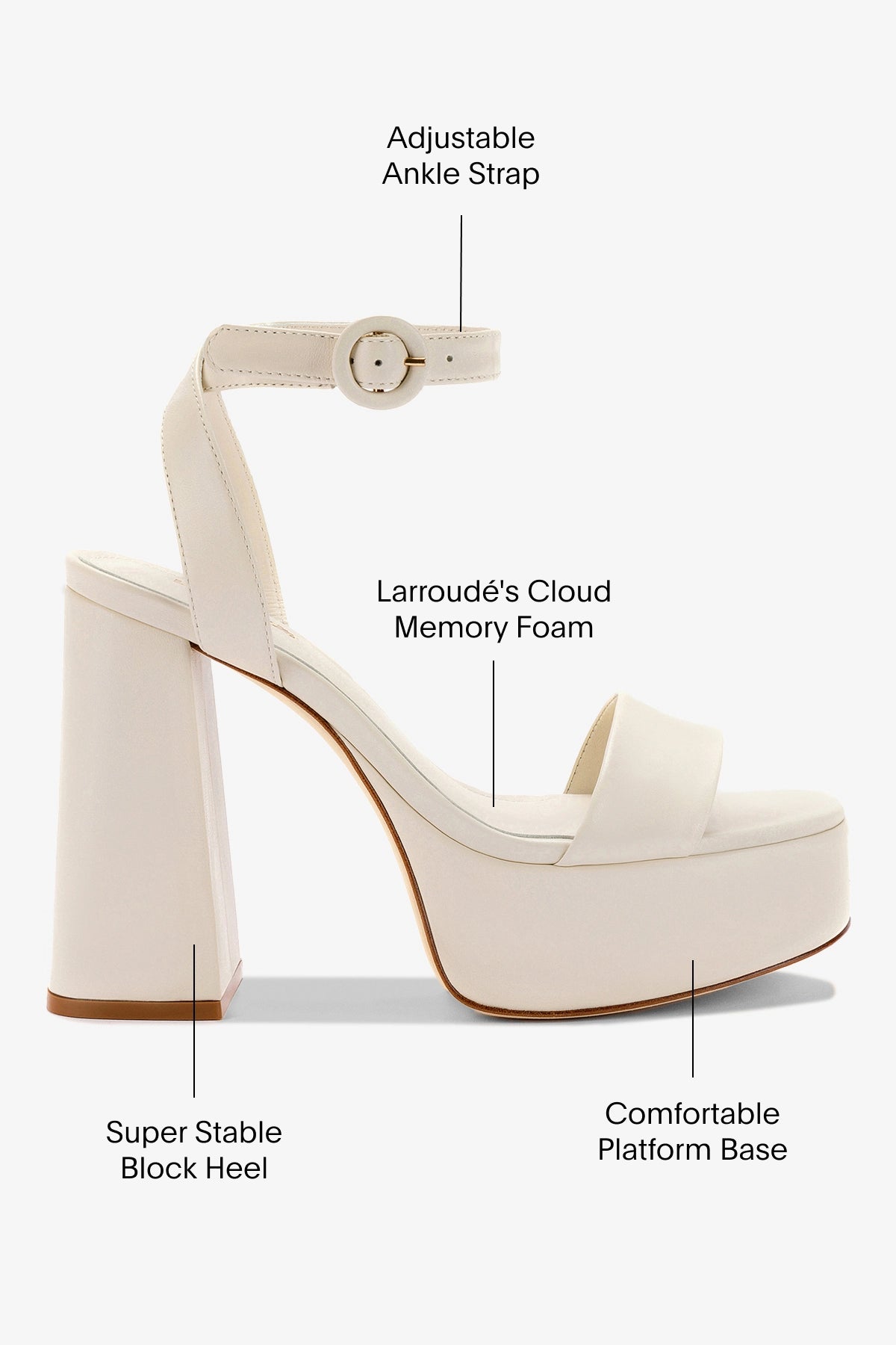 Equal parts party and chic, this leg-lengthening platform is ready for anything. With a comfortable platform base and adjustable ankle strap, the Dolly in a crisp ivory leather is an unexpected evening go-to any time of year.