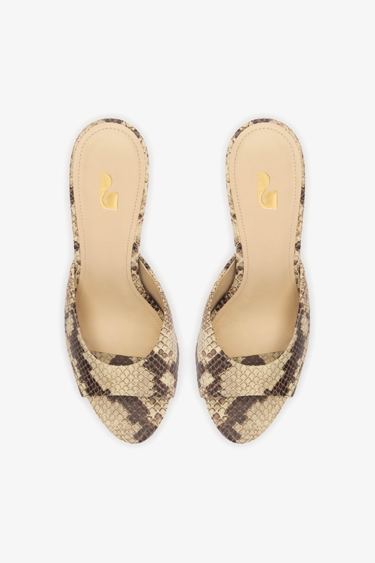 With a retro look and feel, the Jasmine Hi Mule in a snake-effect leather is one of the season's most versatile new styles, featuring a soft leather lining, deceptively comfortable sky-high heel, and an elegant peep toe silhouette.