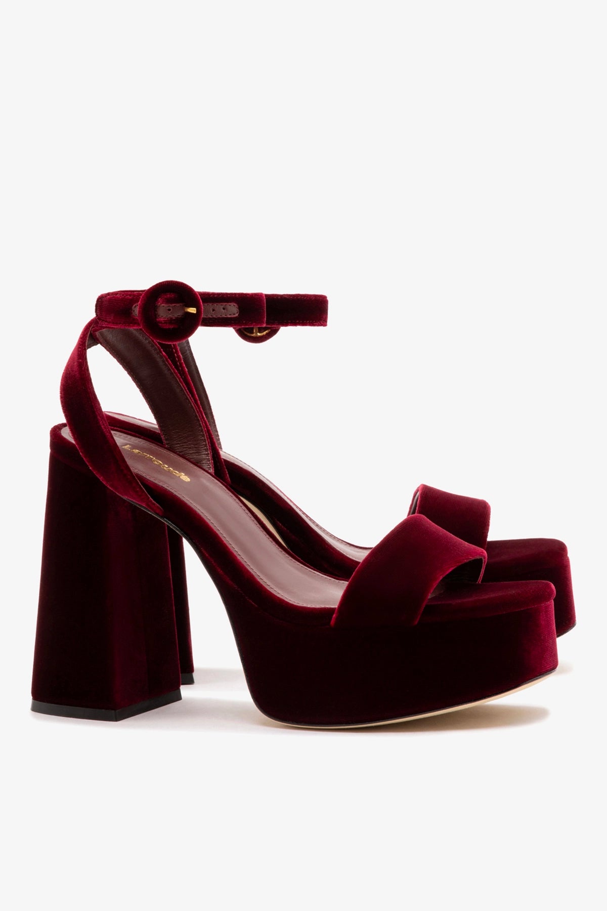 Our iconic Dolly style is back in an irresistible new version. Crafted from luxurious velvet in a rich wine hue, this sandal is a statement of power and style. With its towering block heel and bold platform, it elevates your look and your confidence.