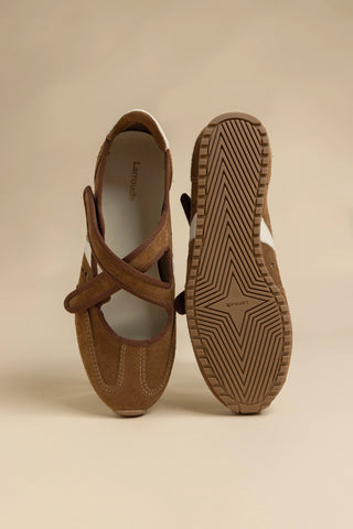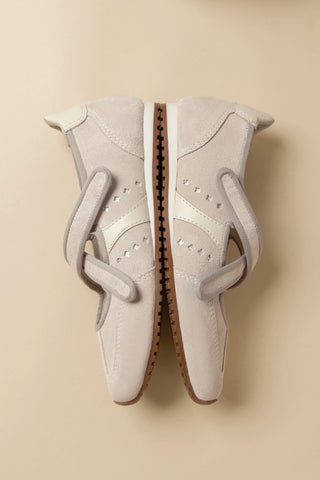 Stella Ballerina Flat In Mushroom Grey Suede and Ivory Leather