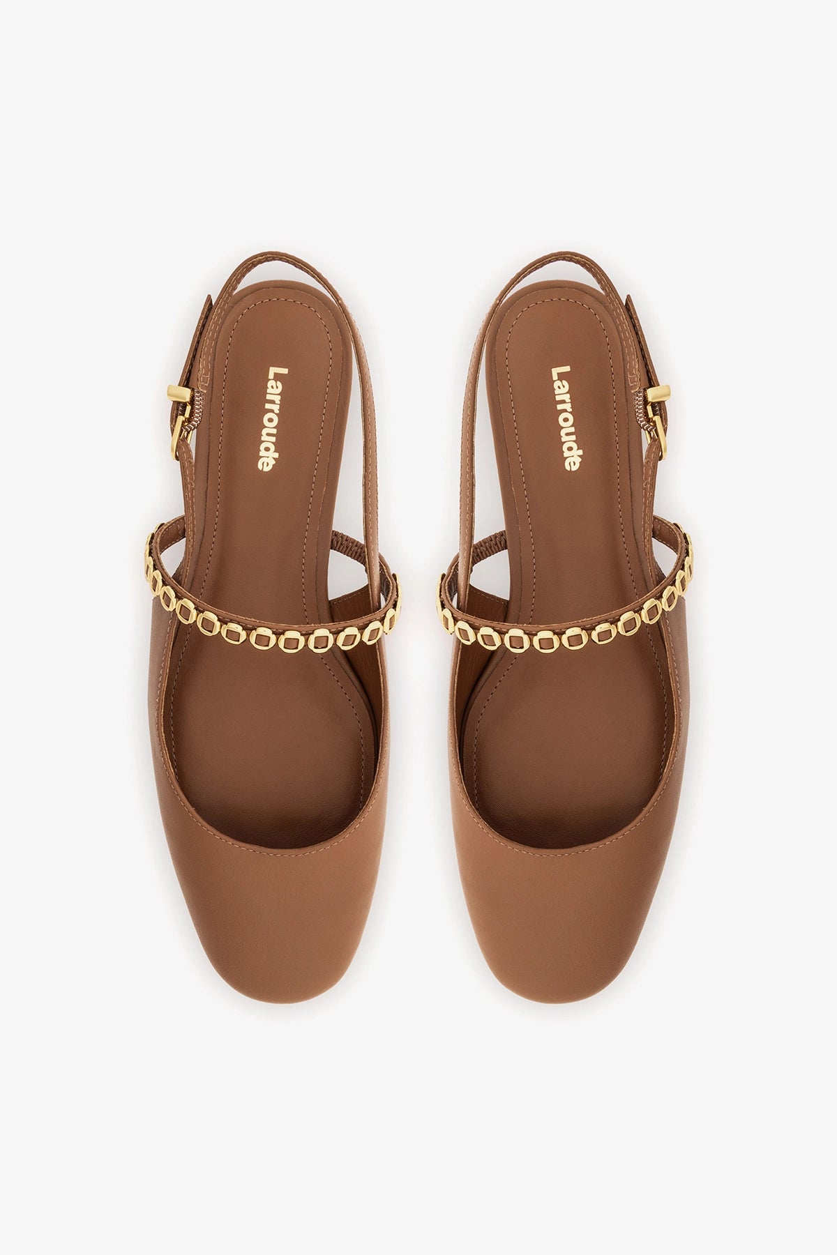 • Insole with Larroudé Cloud memory foam cushion and hot stamp logo
