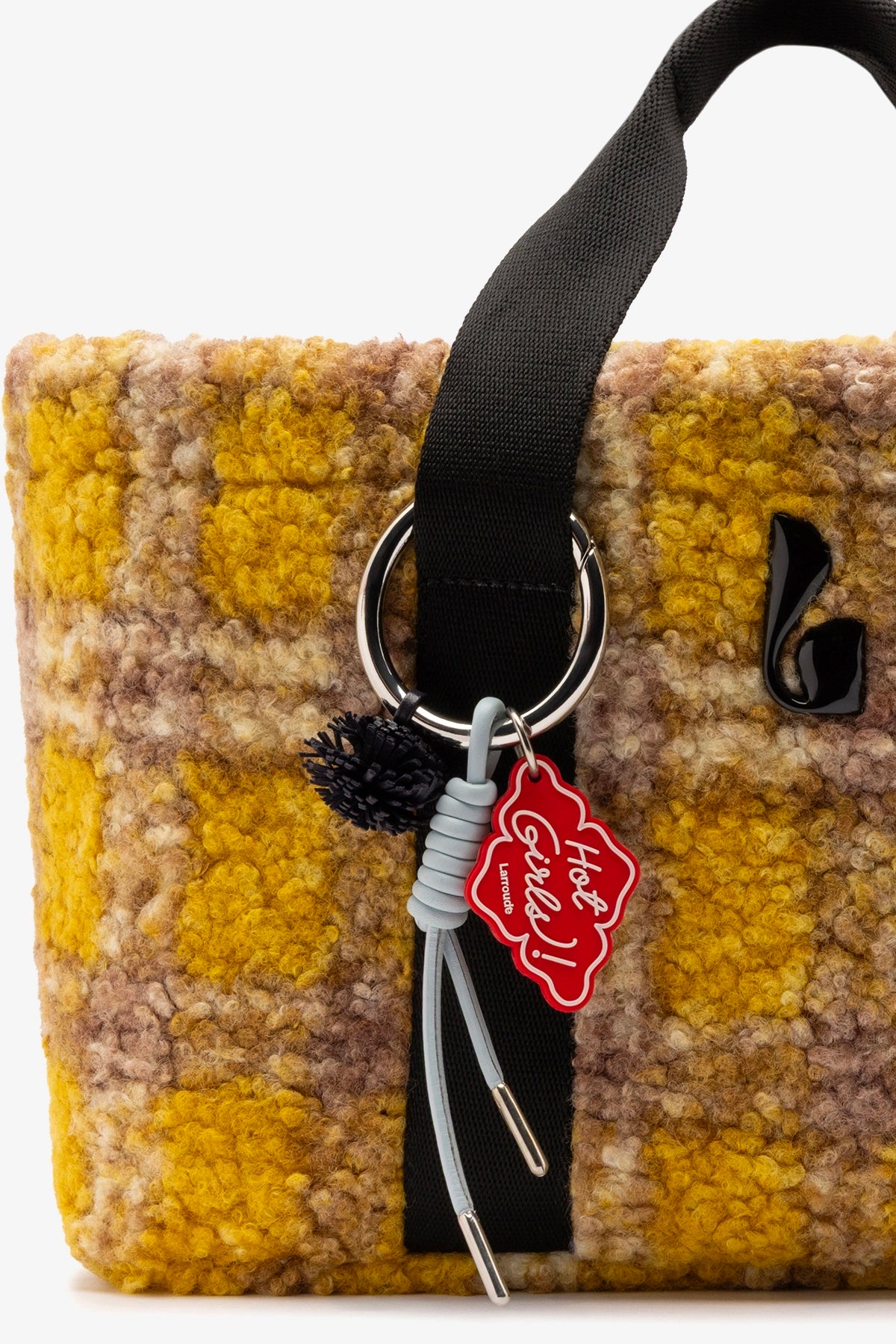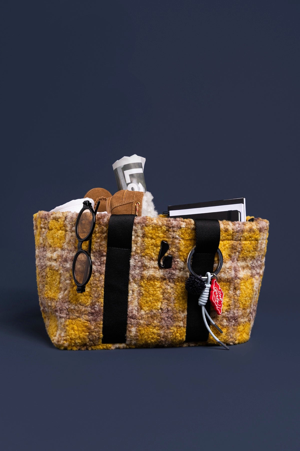 The Americana Tote brings a cool, laid-back feel to everyday style. Crafted in a super fashion-forward plaid fur with sporty straps and a statement key-ring charm, it blends practicality with a modern edge. Spacious, lightweight, and built for real life, it fits your daily essentials, and then some—making it the ultimate carry-all for city days, airport runs, and weekend plans.