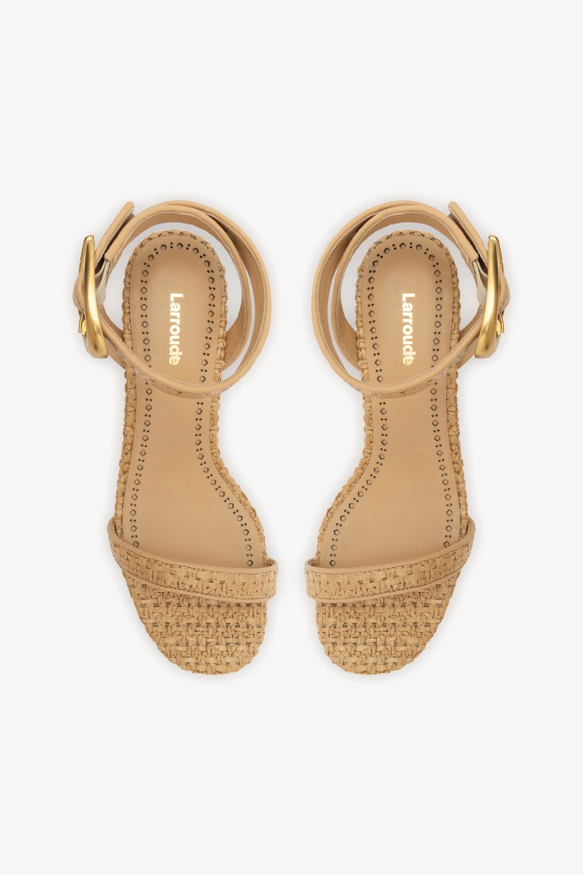 Verona Block Sandal In Beige Leather and Natural Raffia