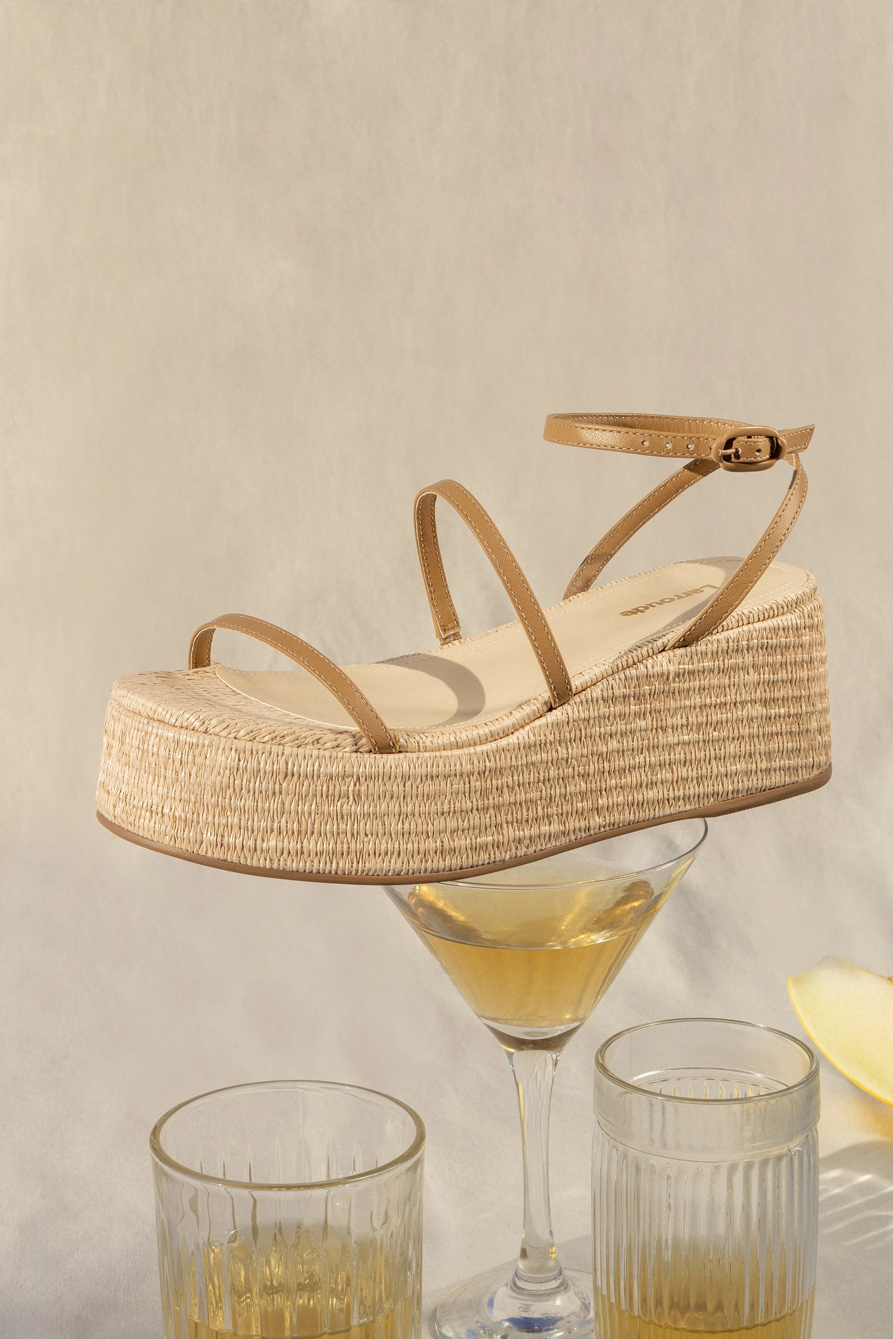 Gio Milanina Flatform Sandal In Beige Raffia