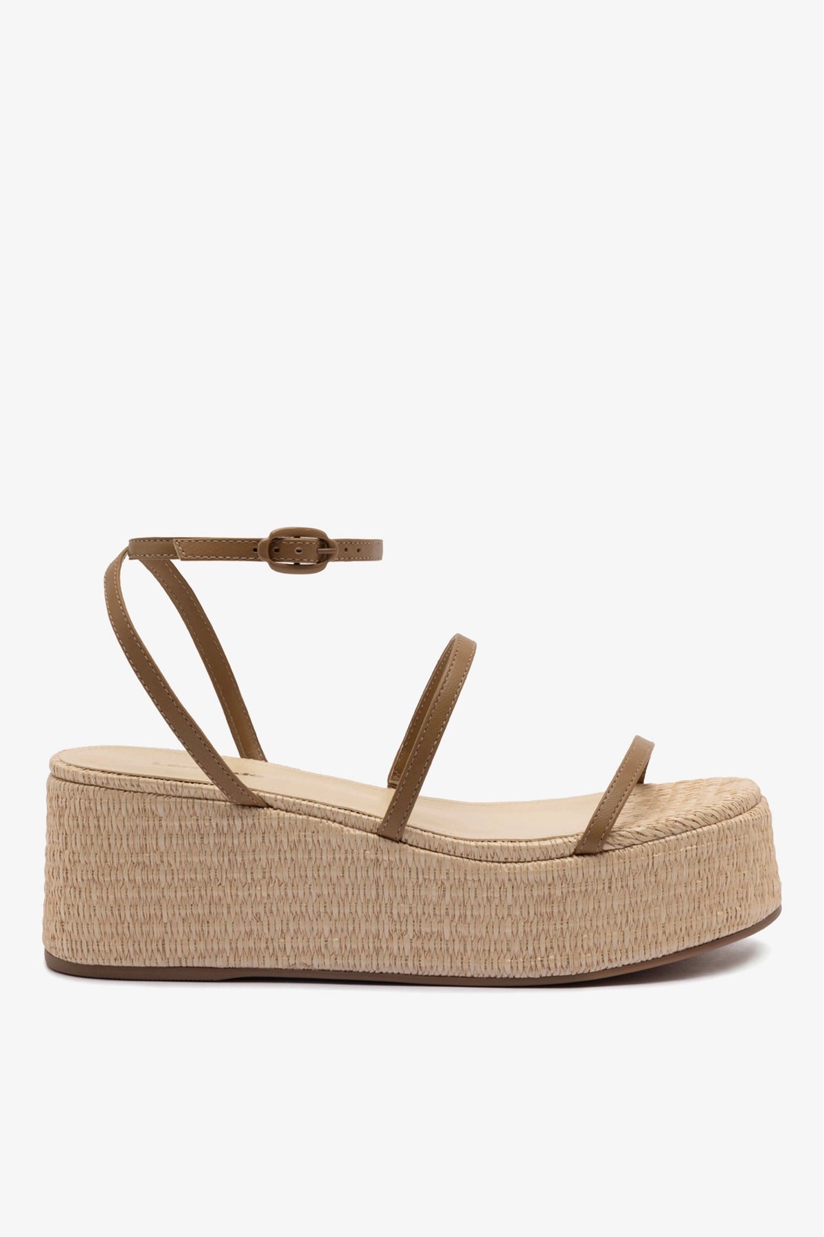 Introducing the barely-there elegance of the Gio with the of-the-moment appeal of our bestselling flatforms, this newest raffia must-have is a combination of all of our favorite things with contrasting leather straps and an added platform base that delivers height and appeal.