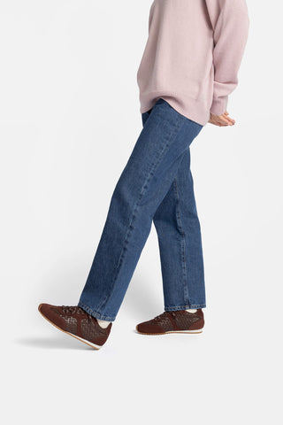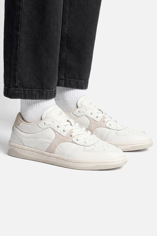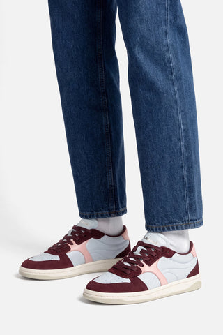 George Sneaker In White and Blood Red Leather and Navy Suede
