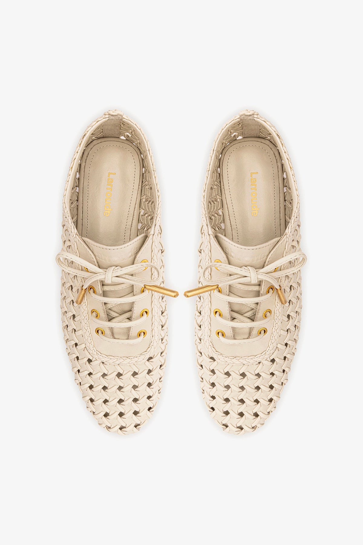 Inspired by the rising jazz shoe trend, the Liza brings the lightness and minimalist aesthetic of dance classics into everyday wear. Now in a handwoven macramé leather with delicate laces, it blends ultimate comfort with a cool, contemporary design.