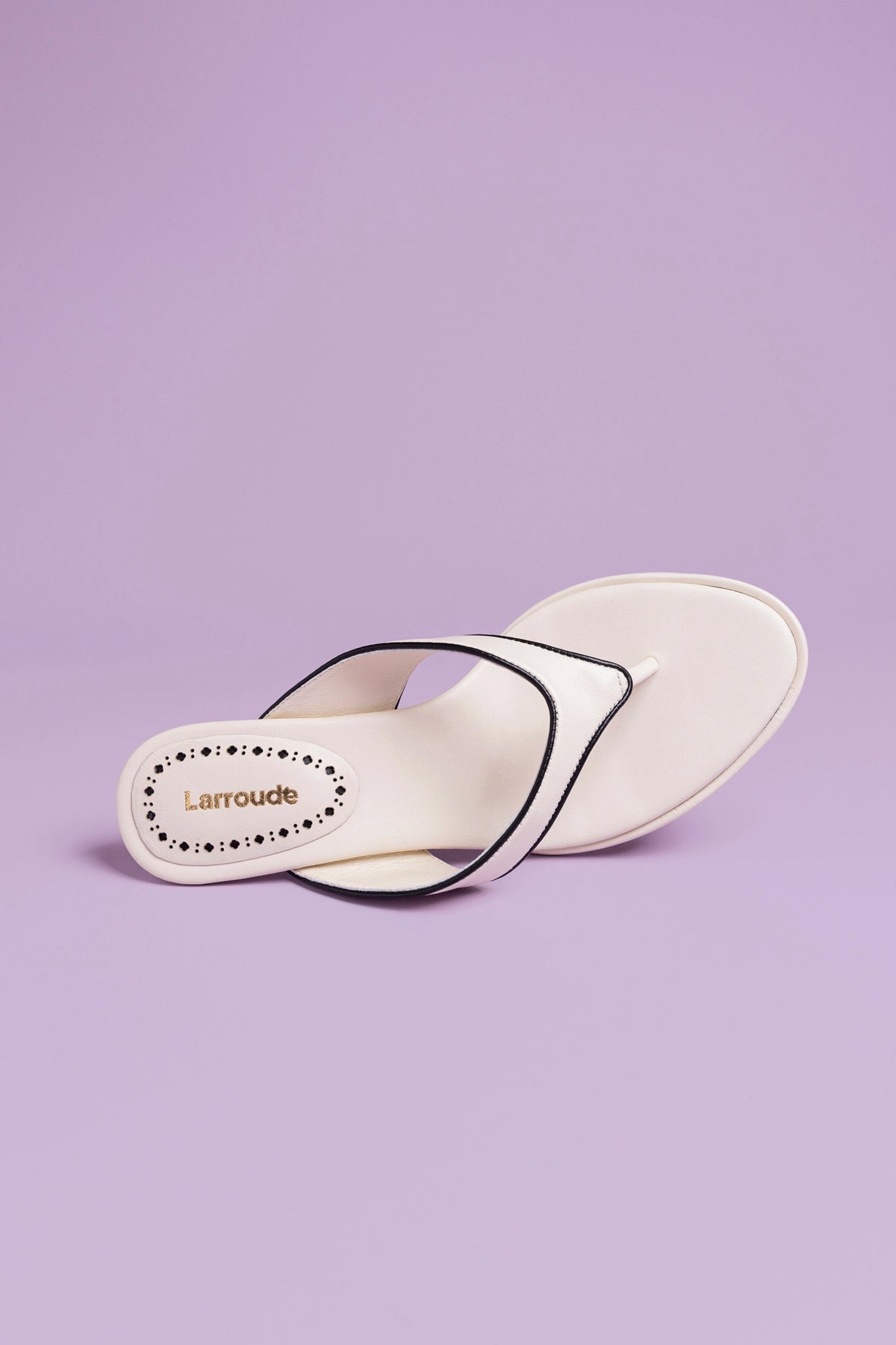 We took the classic thong flip flop to new heights for High Summer with our new Gaia Sandal. In an ivory leather with black trim, this is the one that brings added attitude and style to any look day or night.