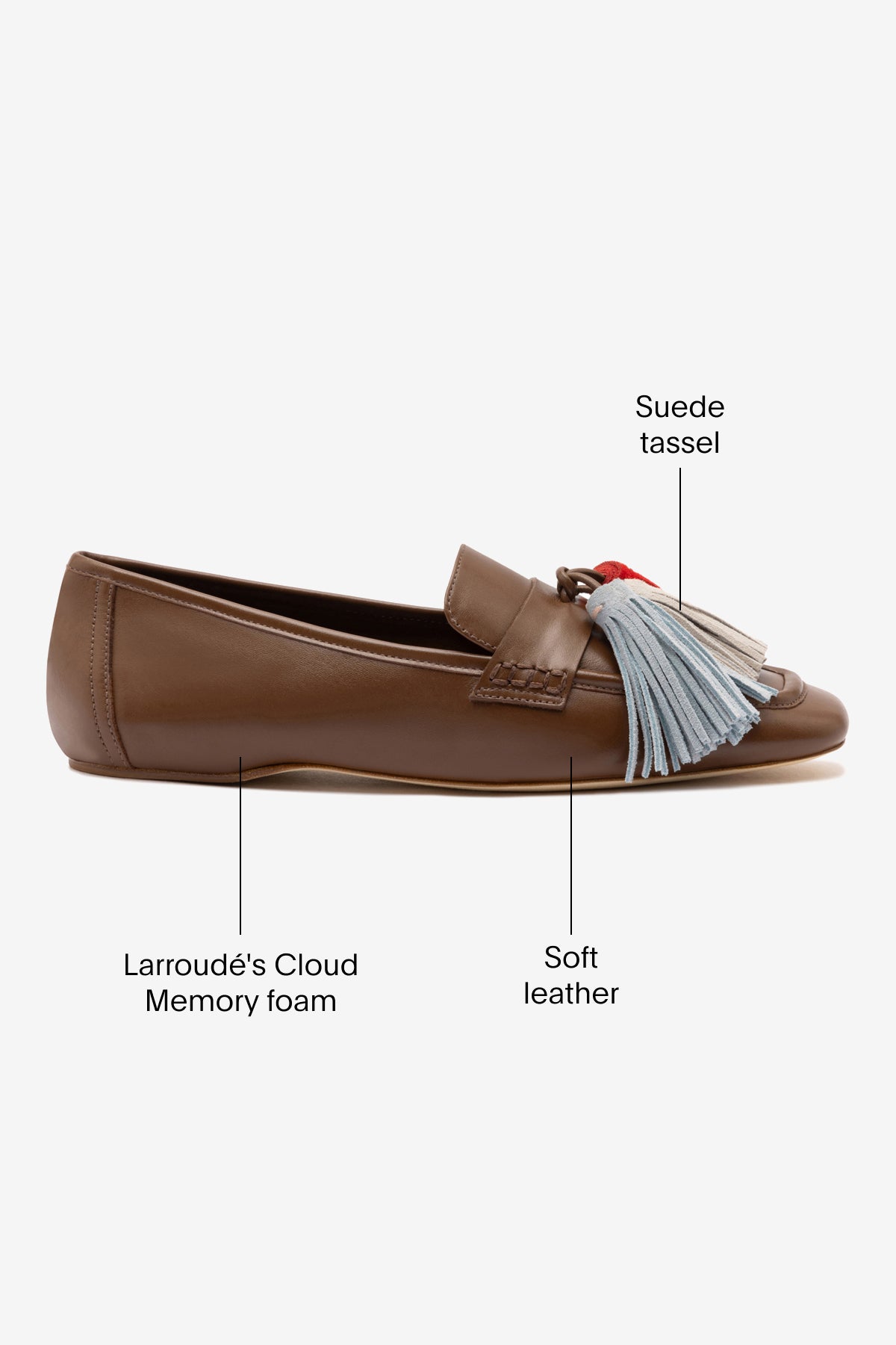 The classic loafer gets a bold refresh with oversized, multicolor tassels that turn a timeless silhouette into a striking style statement. Comfortable and versatile, Suki moves seamlessly from casual to polished, adding personality to any look with ease.