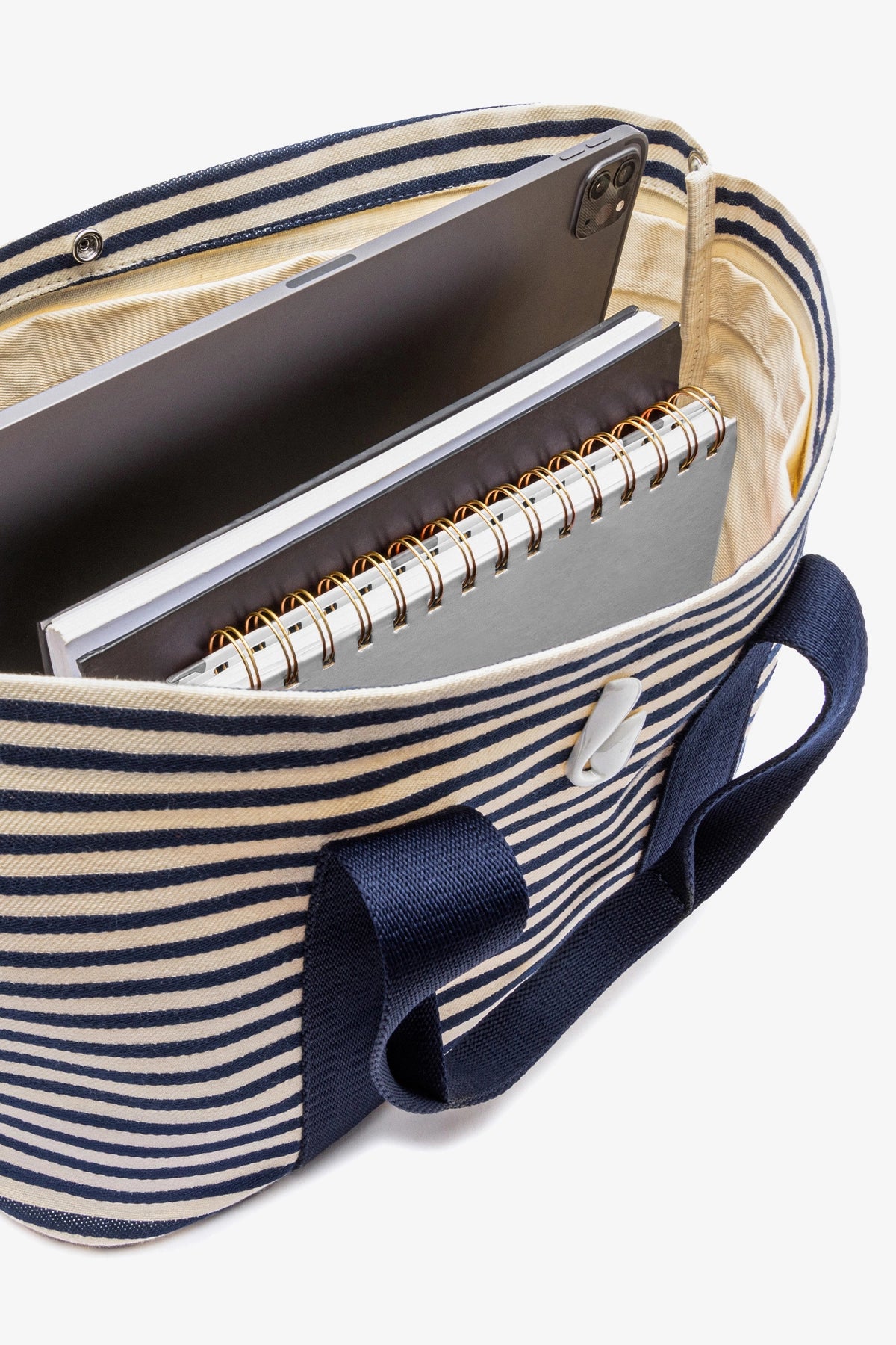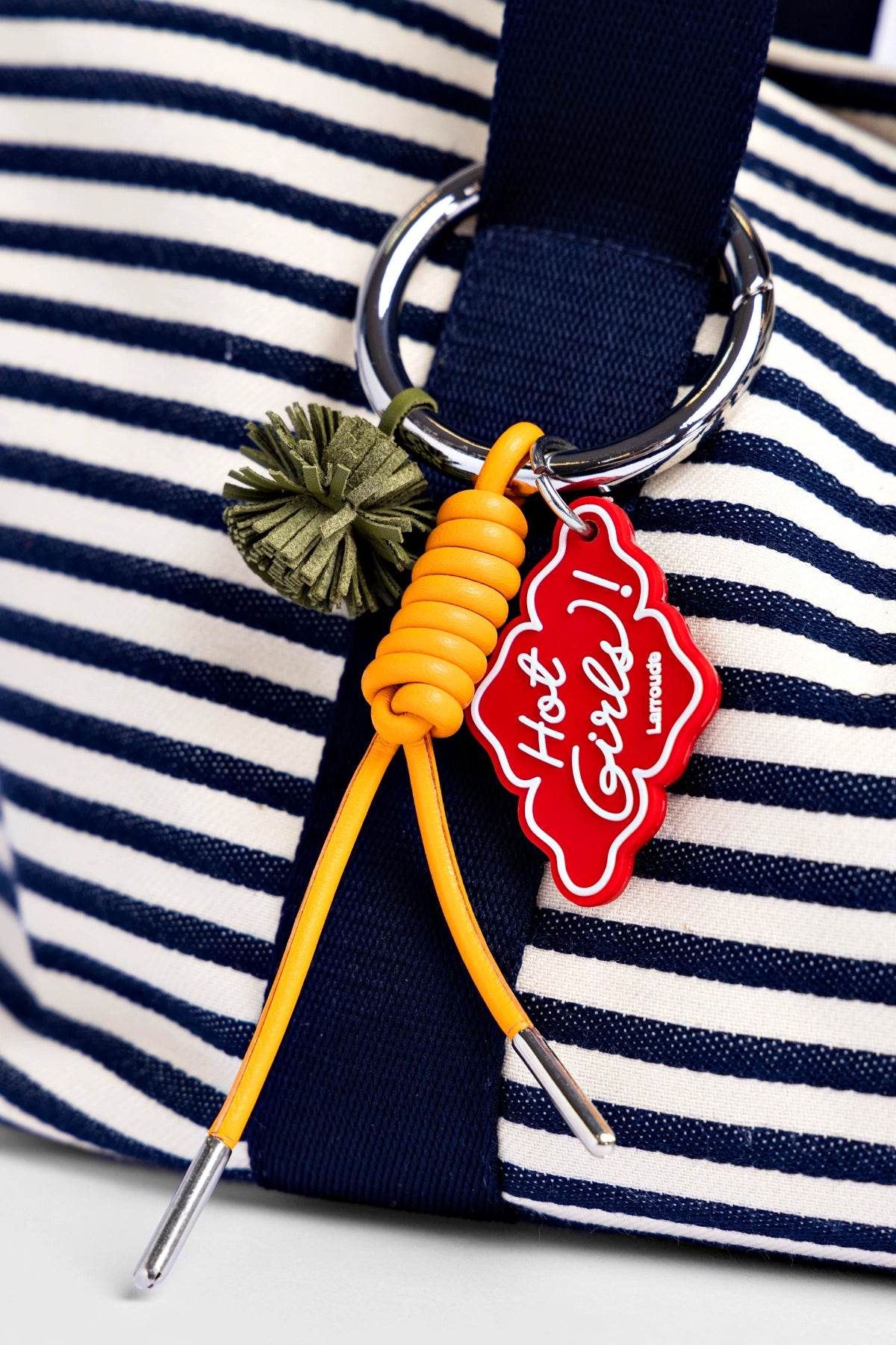 The Americana Tote brings a cool, laid-back feel to everyday style. Crafted in durable canvas with sporty straps and a statement key-ring charm, it blends practicality with a modern edge. Spacious, lightweight, and built for real life, it fits your daily essentials, and then some—making it the ultimate carry-all for city days, airport runs, and weekend plans.