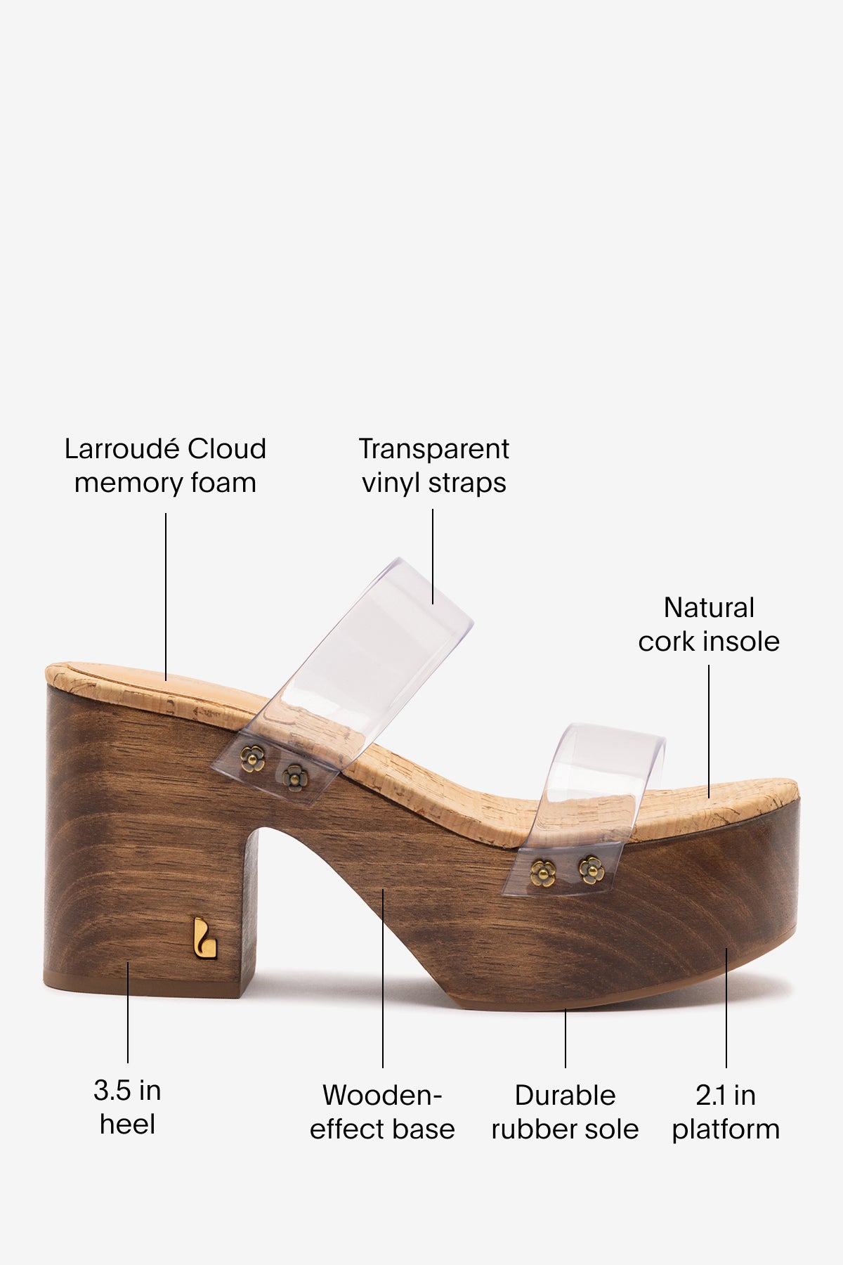 The Miso Clear is a fresh, modern take on one of our best-selling platforms. Featuring transparent straps that lighten the look, this style keeps the iconic base that made the original a favorite—now reimagined in cork and wood for warmer days. Easy to slip on, comfortable, and effortlessly cool from day to night.