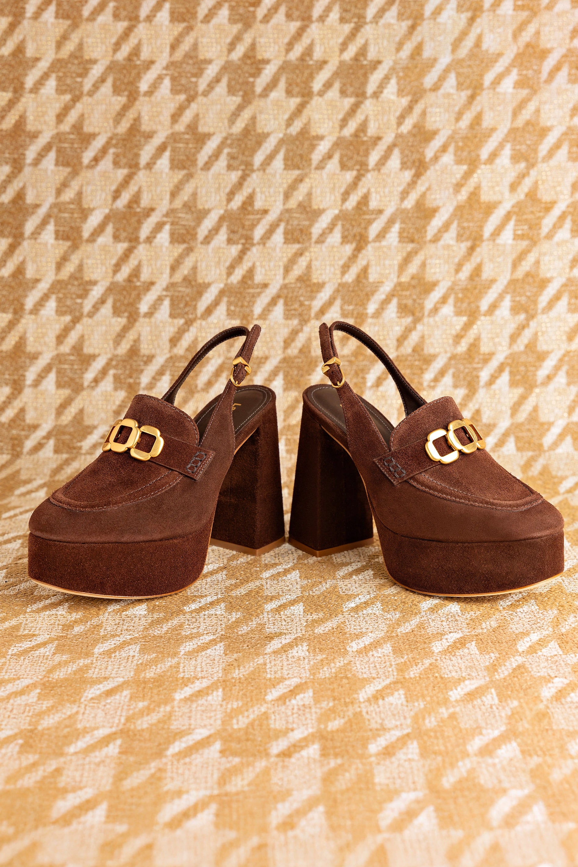 Reach new heights in this bold take on the classic loafer. Set on a sky-high platform and finished with a sleek slingback strap for a modern twist—and a secure fit—it's equal parts power move and everyday essential.