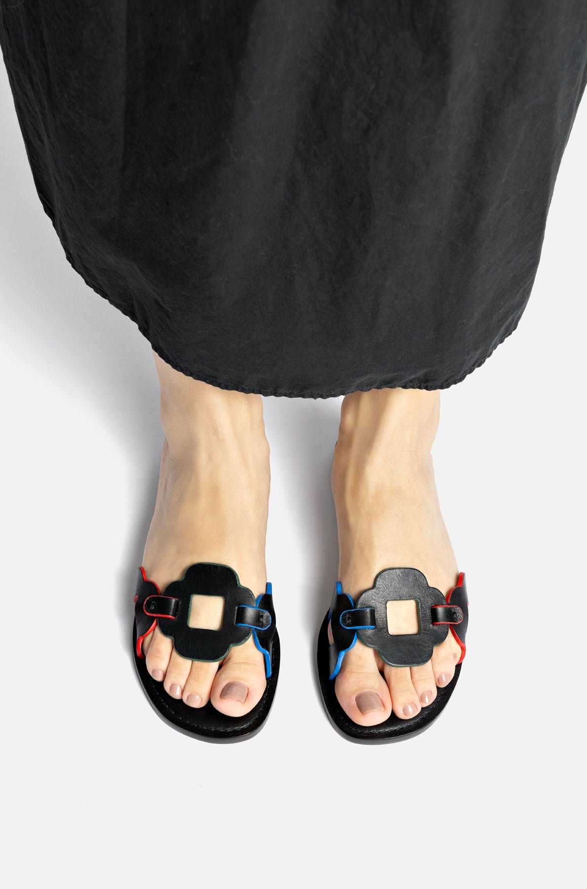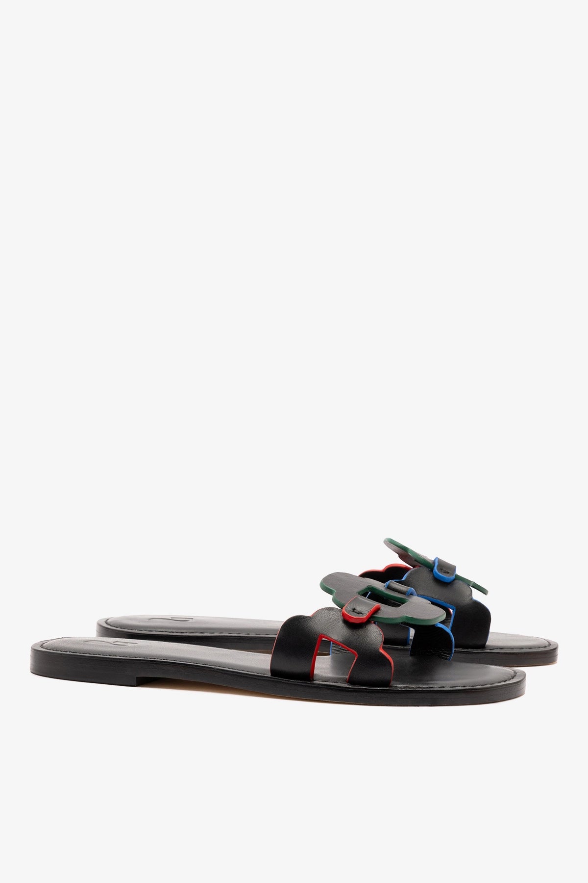 The Margherita Slide brings a playful twist to everyday dressing. Designed with multicolor floral detailing and soft leather, it adds an instant dose of personality to anything you pair it with—from straight-leg denim to tailored shorts.