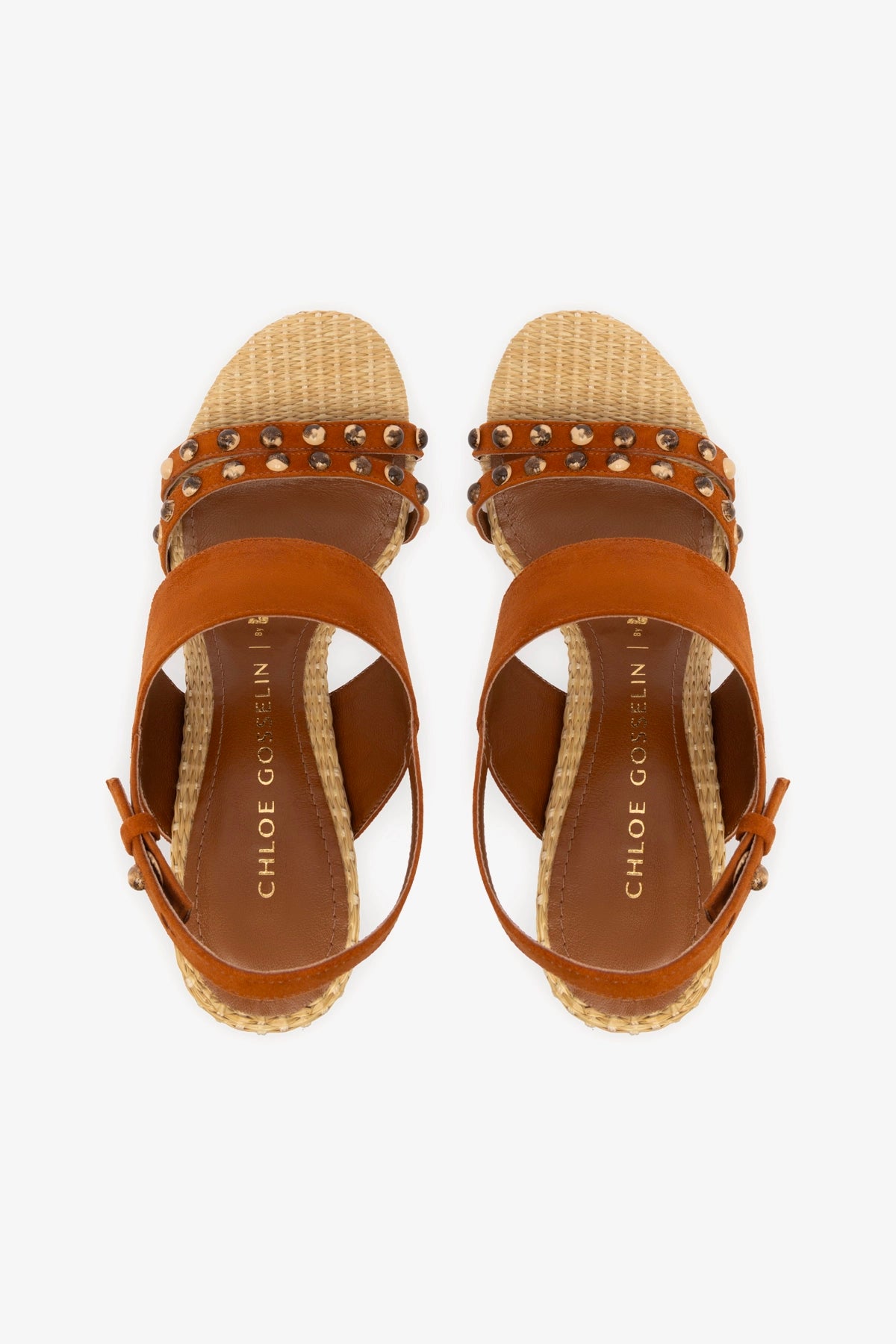 Chloe Gosselin by Larroudé Margot Sandal In Chestnut Suede and Natural Raffia